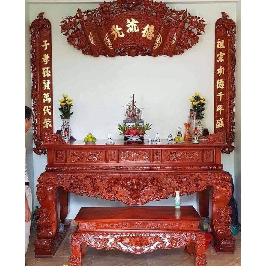 bàn thờ tứ linh gỗ mít dài 217 rộng 107 . bàn chân quỳ 24 tại mạo khê đông triều Quảng Ninh . mít