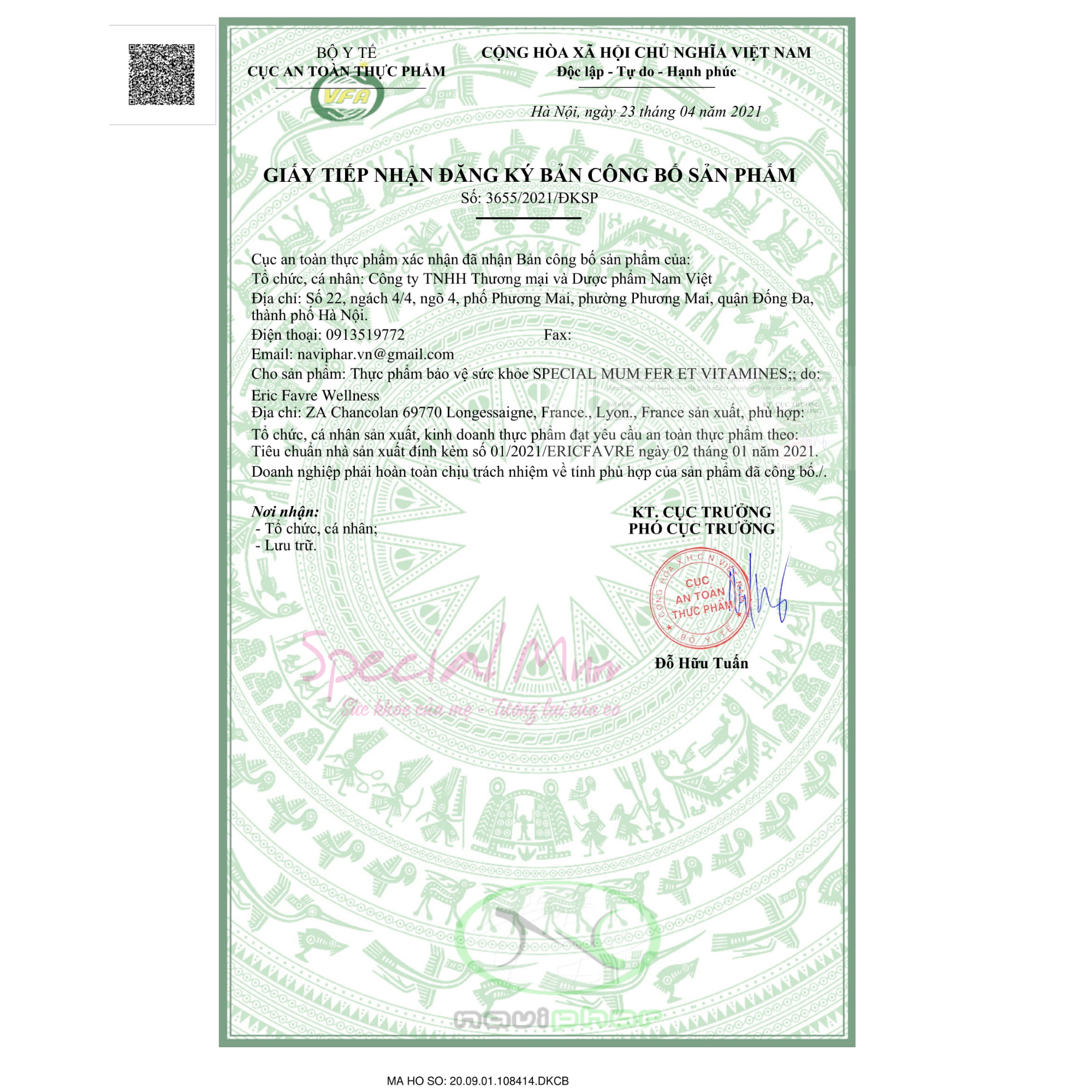 Special Mum - Dòng sản phẩm chuyên khoa hoàn hảo cho mẹ đến từ tập đoàn Eric Favre - Pháp danh tiếng. Các sản phẩm Special Mum giúp mẹ bổ sung các dưỡng chất thiếu yếu từ khi có ý định mang thai, đồng hành cùng mẹ trong suốt thai kỳ và giai đoạn sau sinh. Special Mum cam kết mang lại cho mẹ những trải nghiệm tuyệt vời nhất trên hành trình thai kỳ hạnh phúc. Special Mum Fer & Vitamines được bào chế chuyên biệt dành cho mẹ, mùi vị dễ chịu, chỉ cần sử dụng 1 lần/ngày. Tiết kiệm. Dễ nhớ