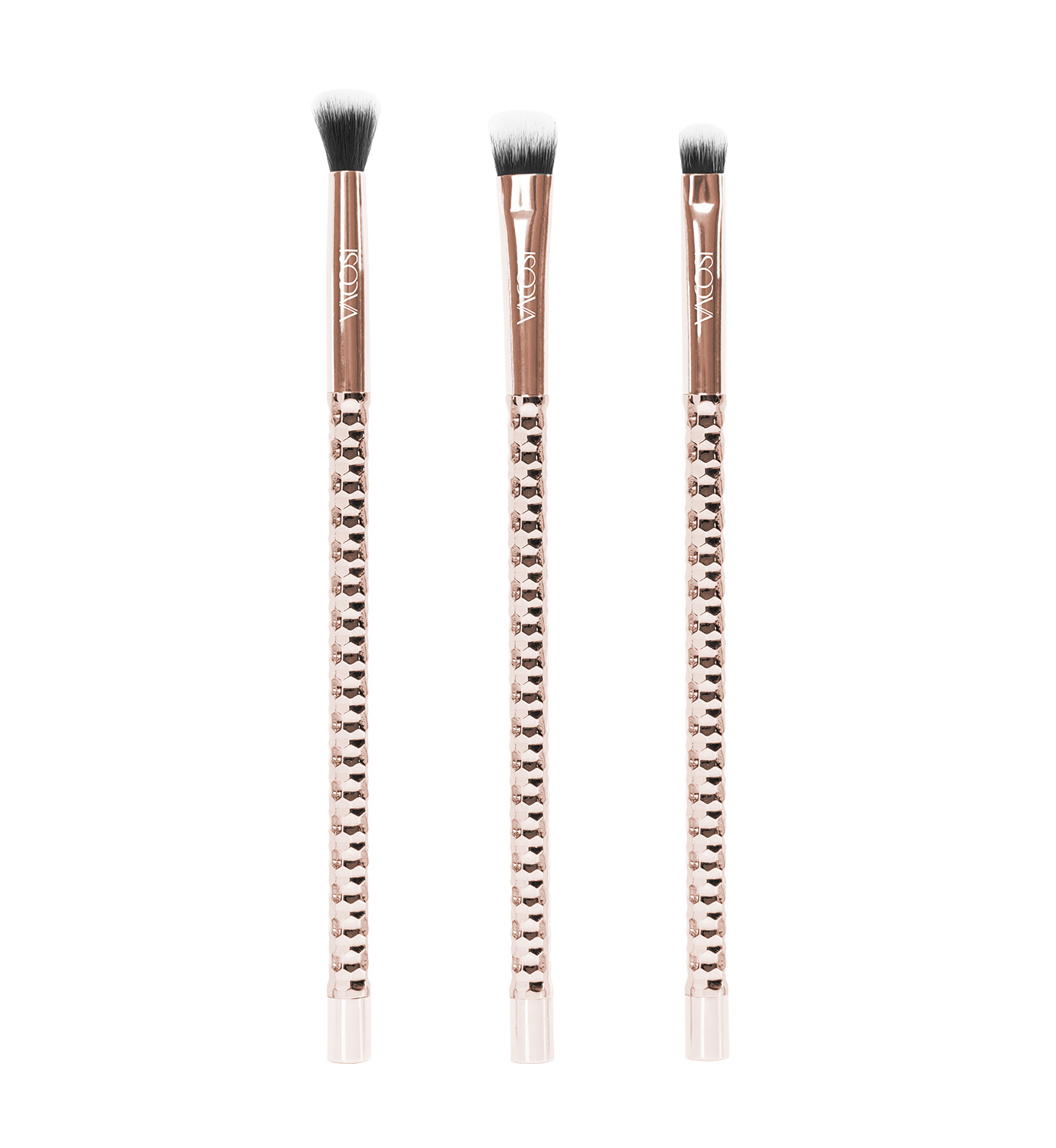 Bộ 3 cọ chuyên nghiệp dành makeup mắt, cọ viền mí ngắn, cọ tán smokey với đầu vát chóp cho hốc mắt sâu, và cọ bắt sáng đầu bung dẹt, mang lại vẻ đẹp mắt ấn tượng và sắc sảo.