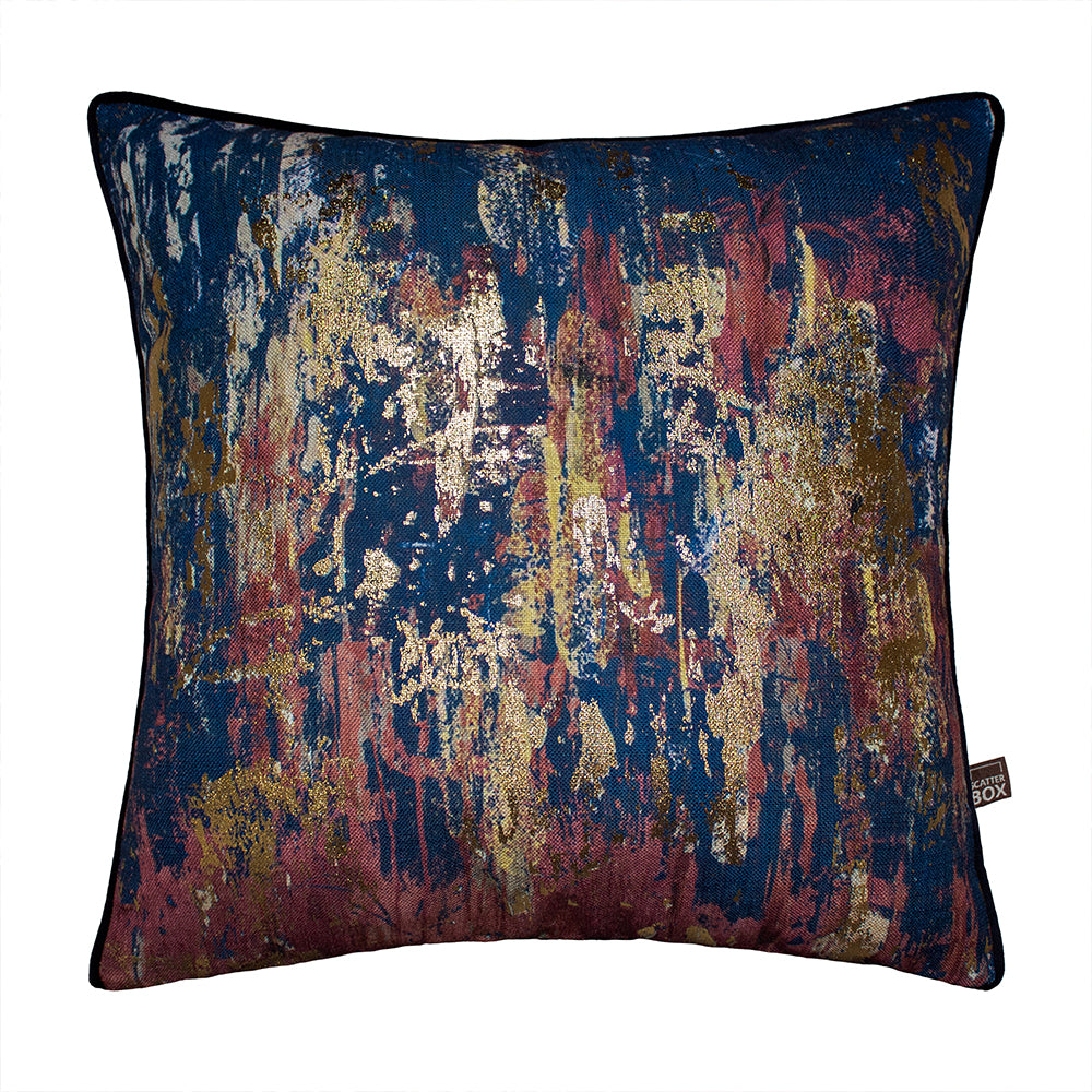 Miêu tả: Một thiết kế hình học hiện đại từ Scatter Box được in kỹ thuật số trên vải giống như vải lanh với mặt trái phối hợp bằng nhung. Kết hợp với nhiều vật phẩm