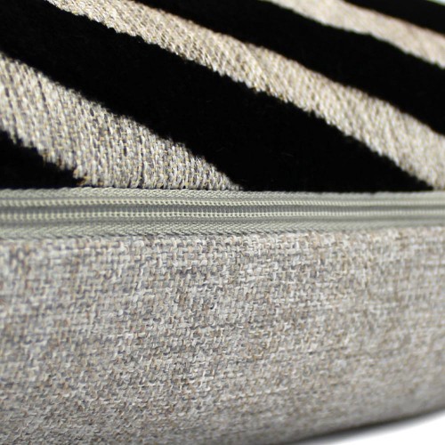 Miêu tả: Một thiết kế hình học hiện đại từ Scatter Box được in kỹ thuật số trên vải giống như vải lanh với mặt trái phối hợp bằng nhung. Kết hợp với nhiều vật phẩm