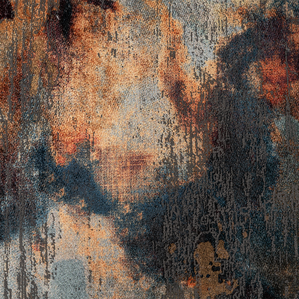 Miêu tả: Một thiết kế hình học hiện đại từ Scatter Box được in kỹ thuật số trên vải giống như vải lanh với mặt trái phối hợp bằng nhung. Kết hợp với nhiều vật phẩm