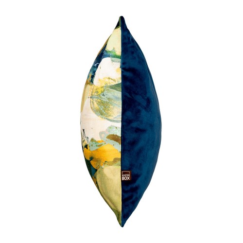 Miêu tả: Một thiết kế hình học hiện đại từ Scatter Box được in kỹ thuật số trên vải giống như vải lanh với mặt trái phối hợp bằng nhung. Kết hợp với nhiều vật phẩm