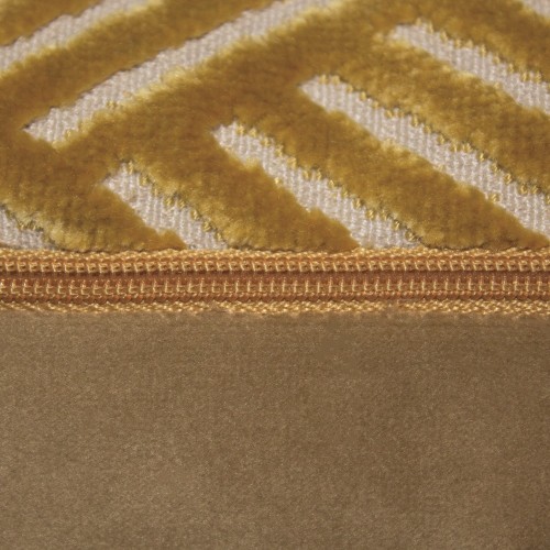 Tên: Gối Vesper 43x43cm, màu Vàng Cổ Điển Mô tả: Vải nhung cắt cúp xa hoa trong thiết kế hình học hiện đại với mặt sau là vải nhung màu vàng cổ điển phối hợp.