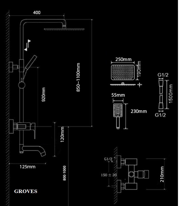 – Sen tắm âm tường nóng lạnh inox Sus304 – Màu sắc: Black sang trọng – Bát sen âm trần đèn Led, bát gắn trần -Lưu lượng: 16L/min~28L/min – Van nóng lạnh nhiệt độ kèm