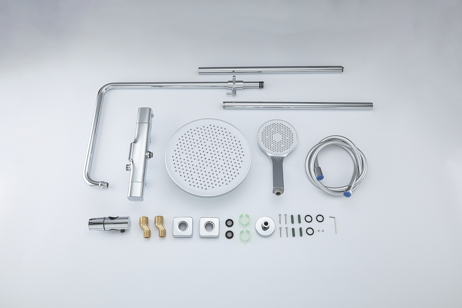 Combo gồm: 01 thân vòi sen lạnh, 01 chụp chân sen, 01 thân vòi lavabo, 01 dây cấp nước, 01 tay sen, 01 dây sen, 01 gác tay sen + ốc vít và tắc kê