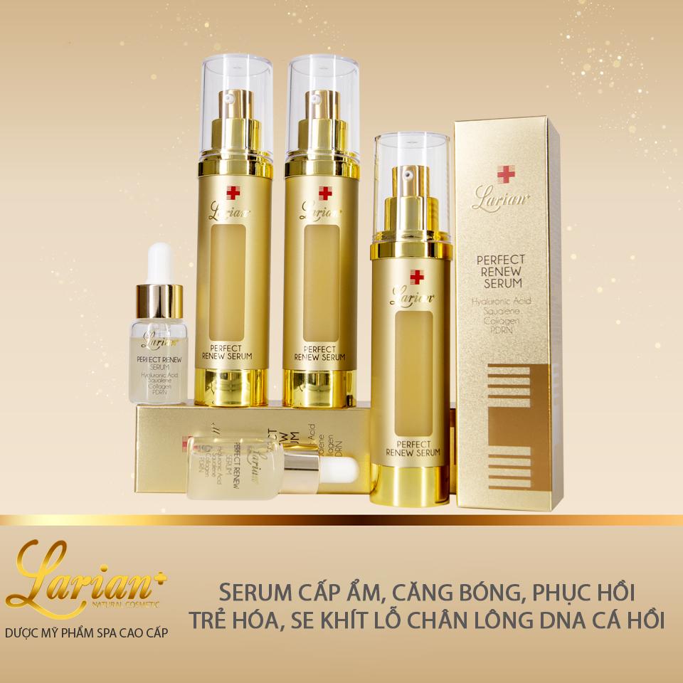 Perfect Renew Larian+ được công bố bởi Bộ An toàn thực phẩm và dược phẩm Hàn Quốc chứa Adenosine có chức năng cải thiện nếp và DNA cá hồi có khả năng tái sinh làn da.