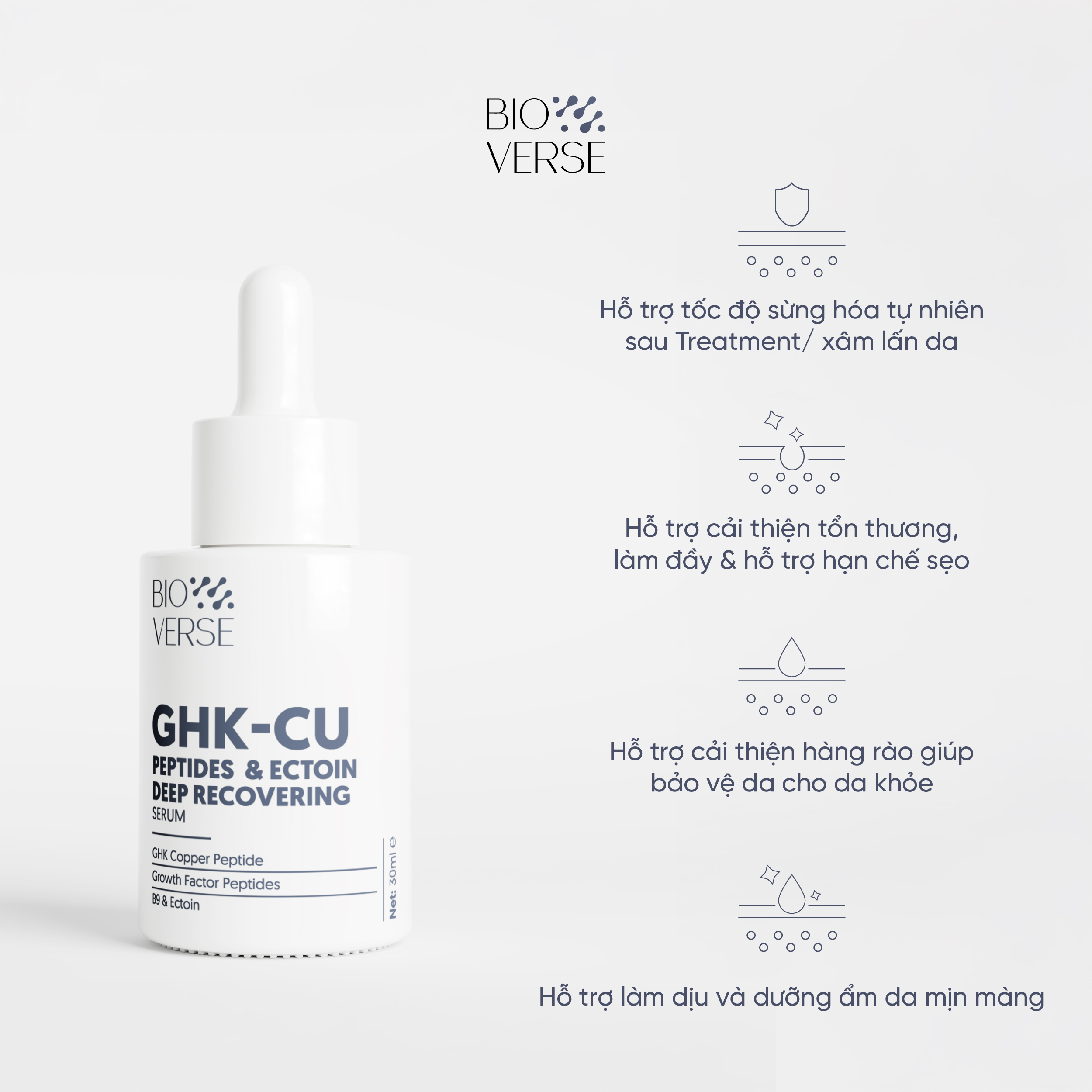 Serum Đồng Peptides tăng sừng khỏe & phục hồi da Bioverse GHK-Cu Peptides & Ectoin Deep Recovering Serum