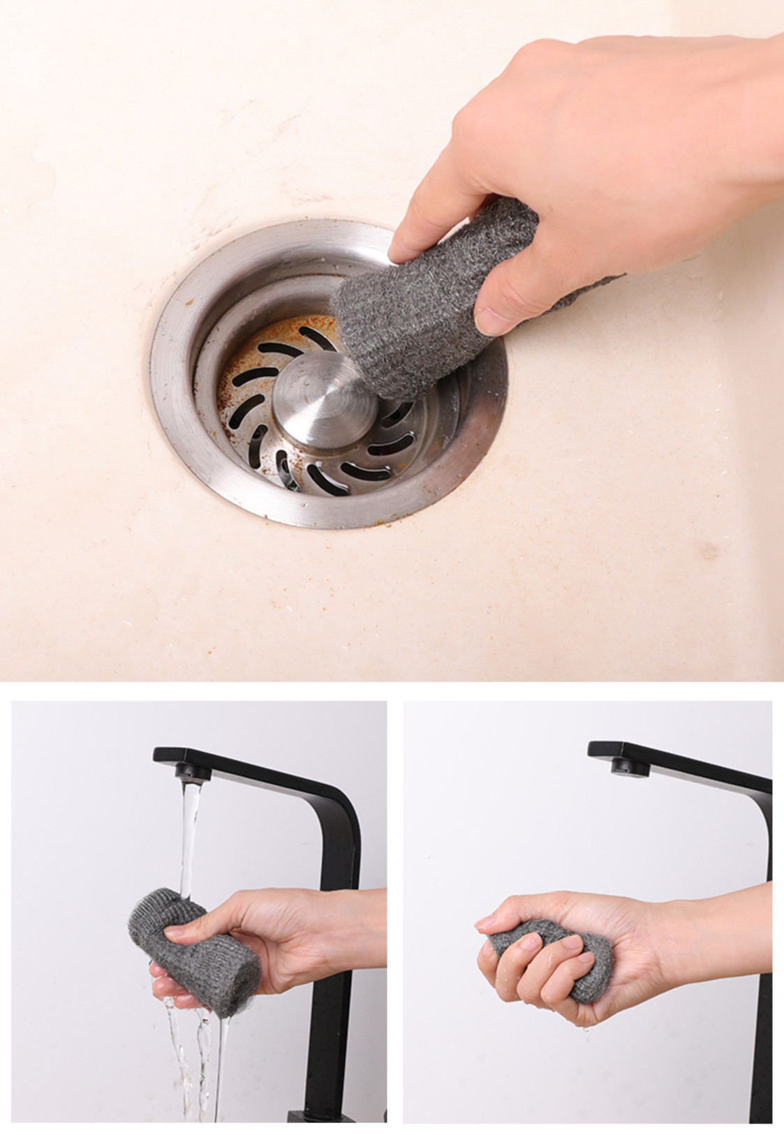 - Lưu ý: Sản phẩm có thể sẽ bị xước/ hỏng bề mặt các vật dụng sau khi cọ rửa/ vệ sinh nếu không sử dụng đúng cách!