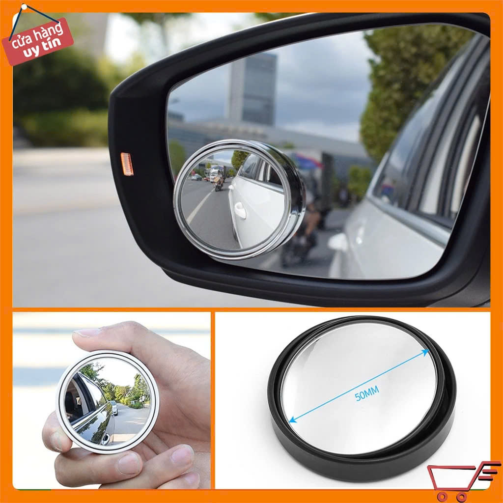 Set 2 Gương Cầu Lồi Gắn Kính Hậu Ô Tô Xoay 360° Xóa Điểm Mù Kính Thật Tráng Bạc Cao Cấp Loại Tốt