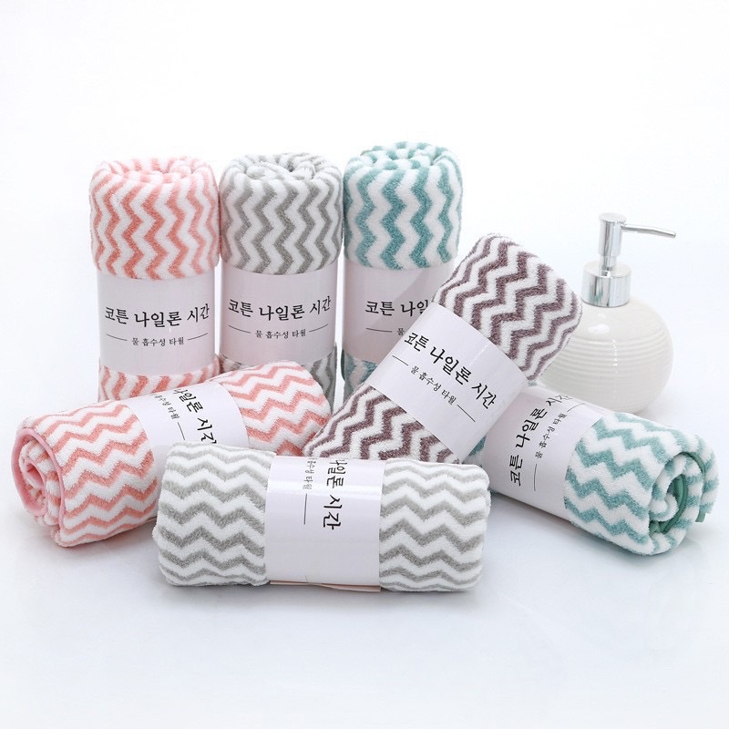 ✨Sét 5 cái khăn lau mặt cuộn tròn lông cừu Hàn Quốc 50 x 30cm , kẻ sọc nhiều màu , sợi bông mềm mại cao cấp
