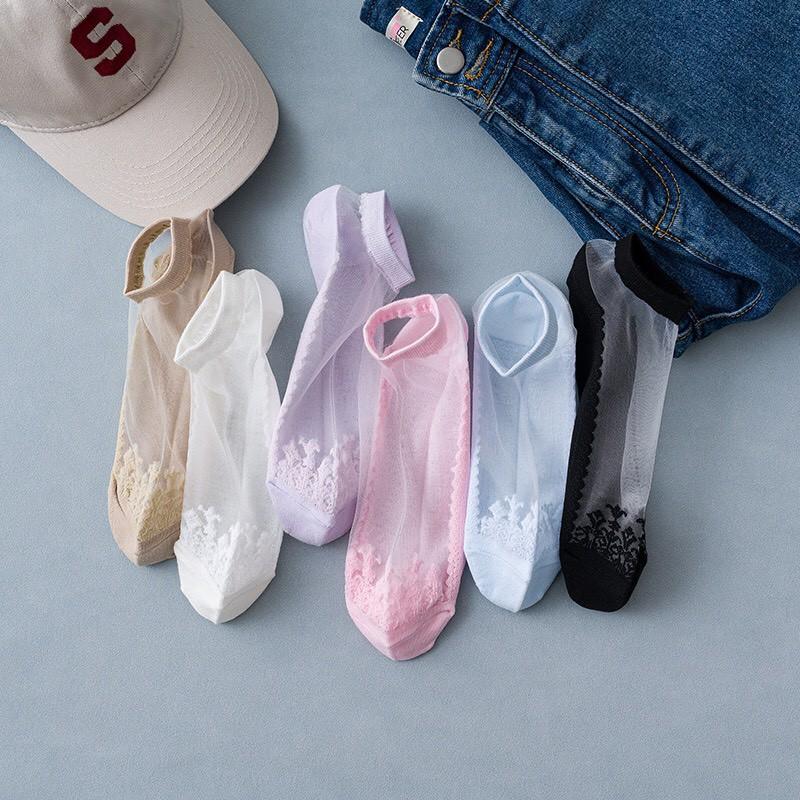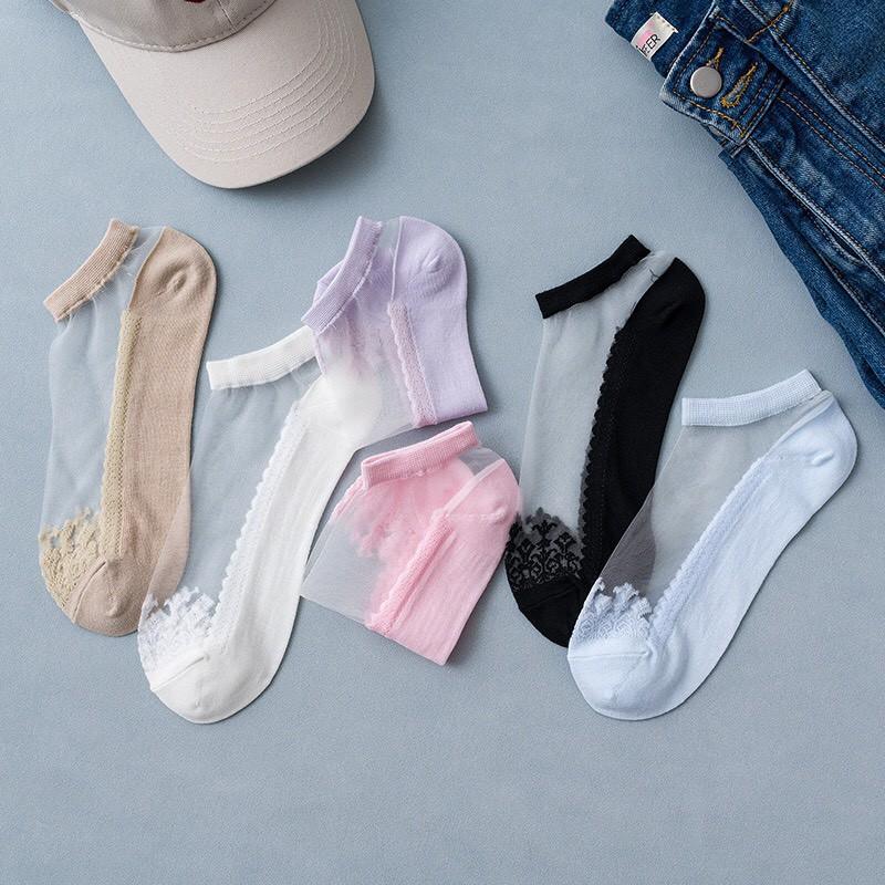 ✨Sét 5 Đôi tất -Vớ Lụa Thủy Tinh Trong Suốt Trống Trượt - Kiểu Dáng Hót Trend Hàn Quốc hè 2020 ( Mã T02)