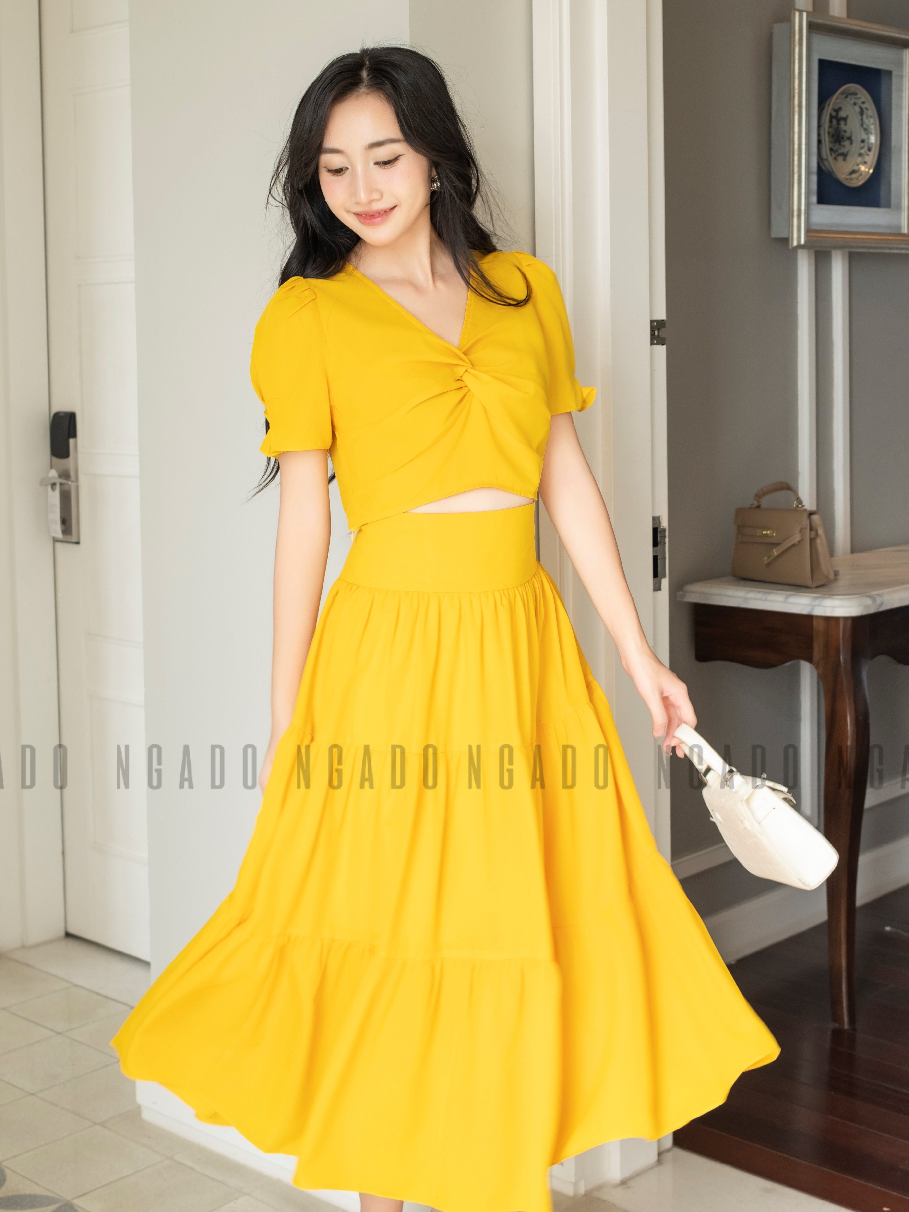 ✨Set áo váy vàng NGADO , set đồ nữ , Set áo kèm chân váy xòe , Set đồ nữ thiết kế