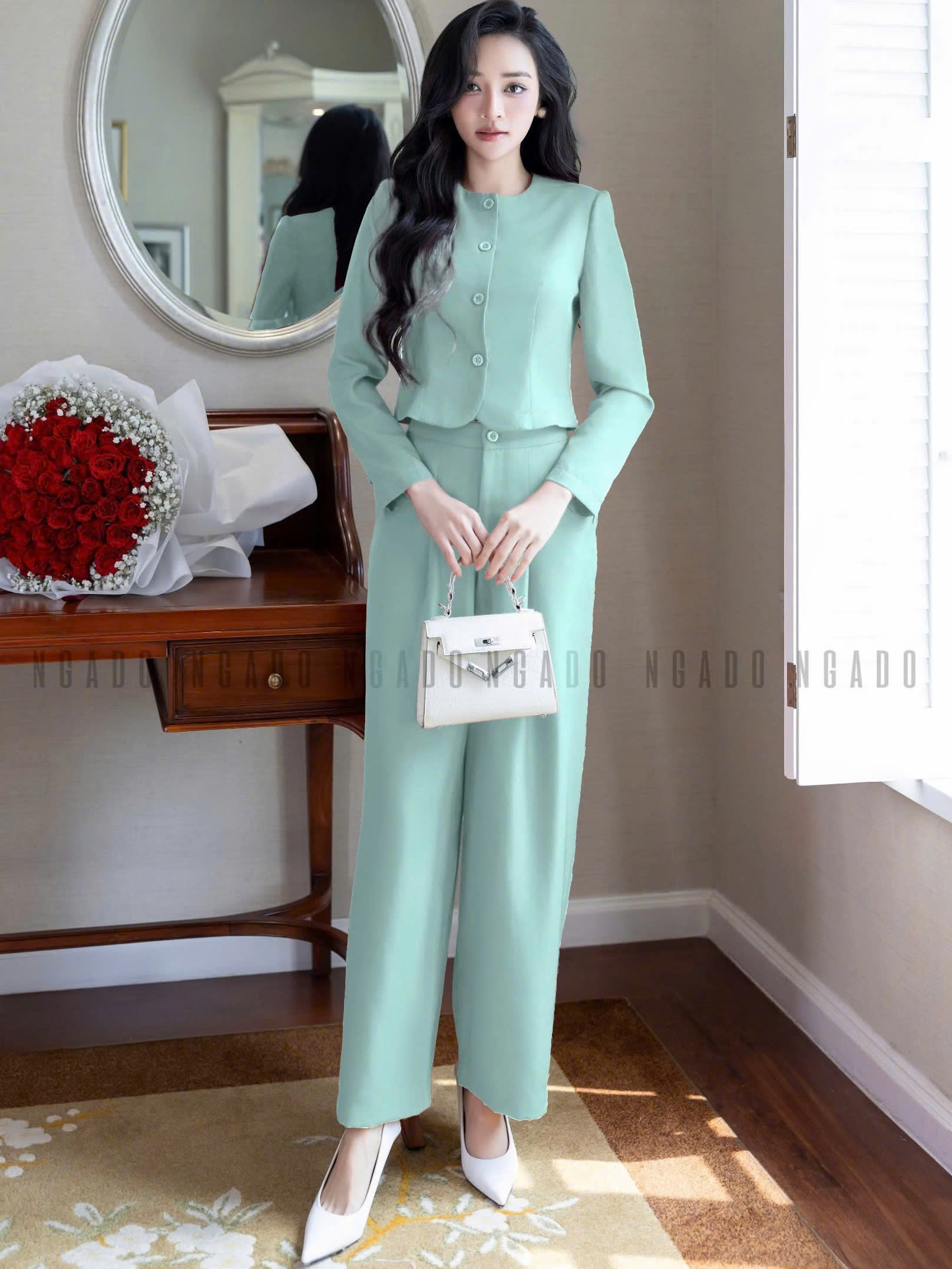✨Set áo quần xanh mint cổ tròn NGADO , set áo quần dài , set công sở , dạo phố