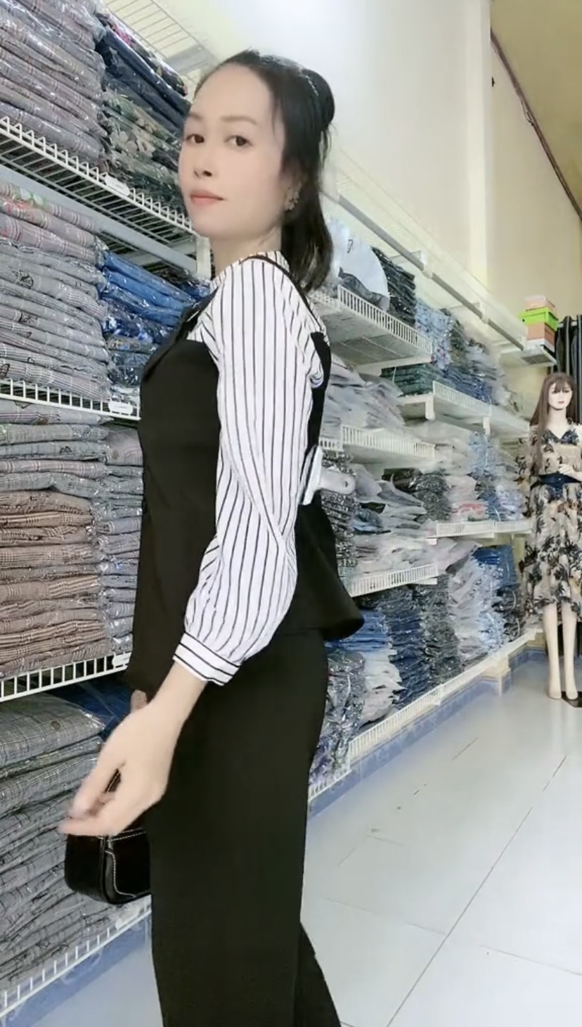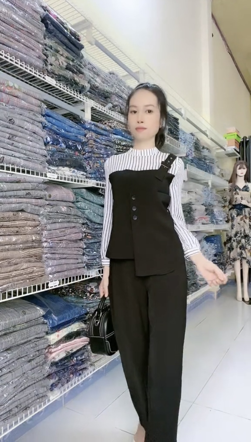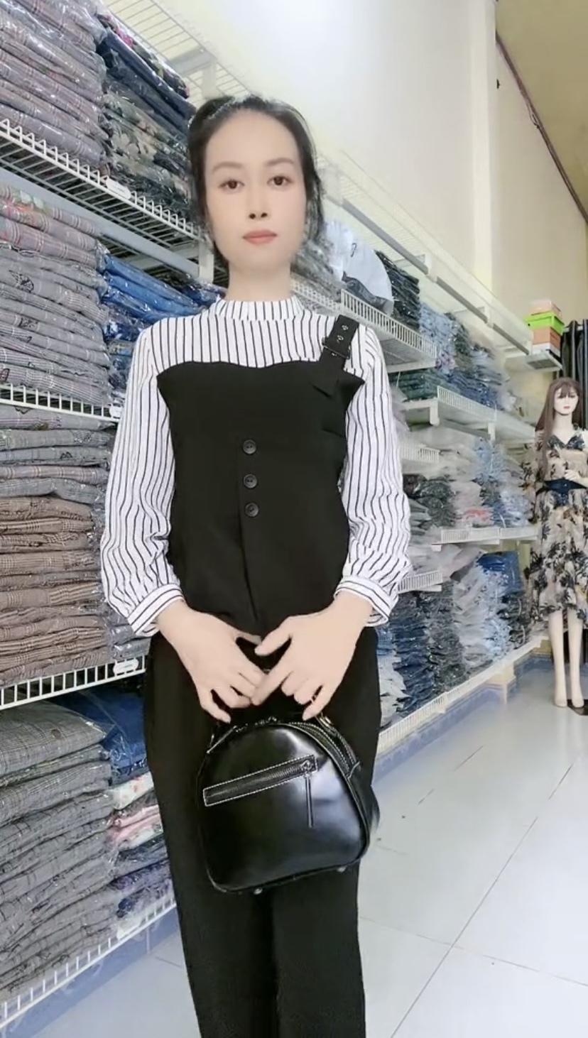 ✨Set áo sơ mi yếm sọc một dây kèm quần ống đứng trẻ trung.
