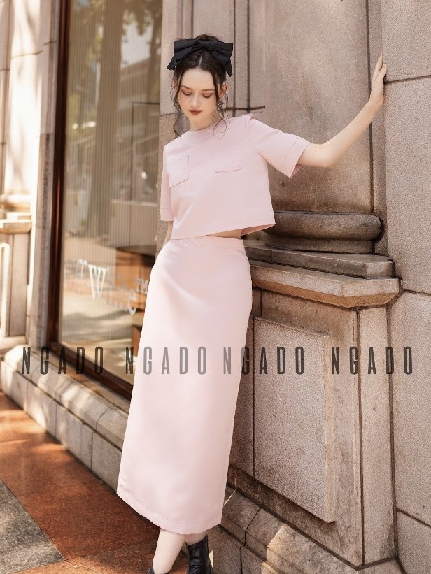 ✨Set áo váy hồng ngắn tay NGADO