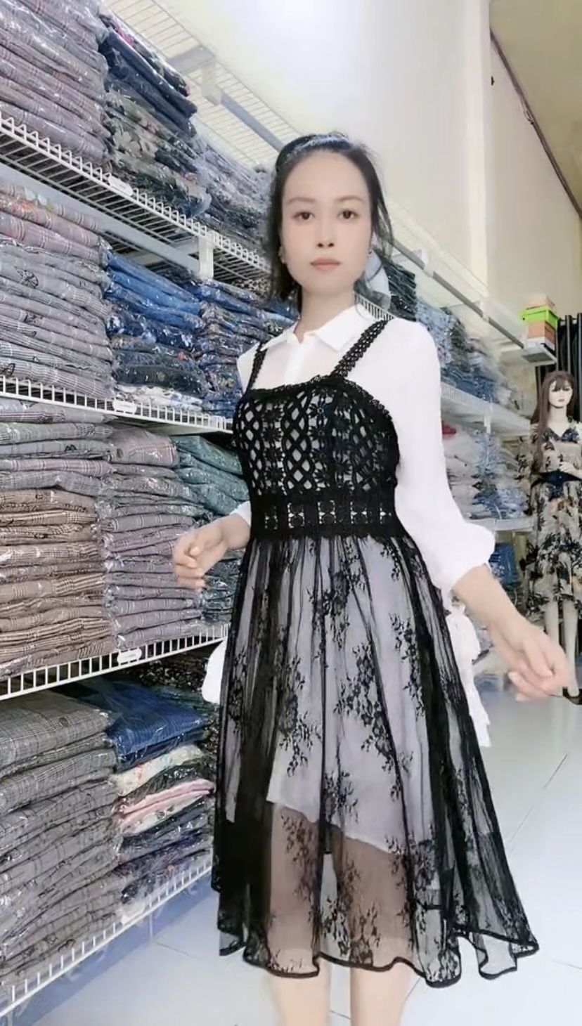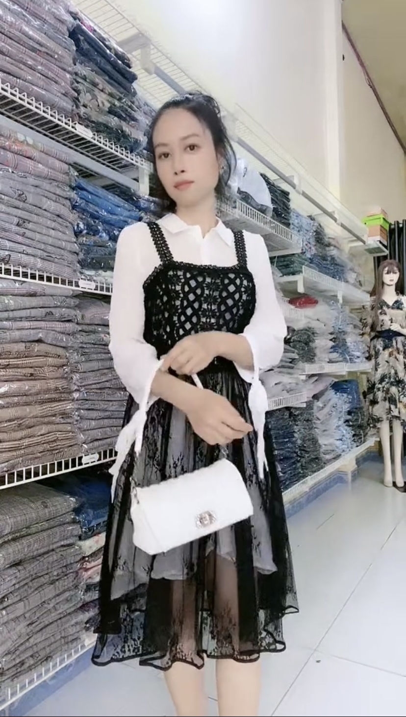 Đầm yếm và áo form dài nguyên set Mã: SDLCG001 Màu: Trắng + Đen Chất liệu: Linen, sợi bông thiên nhiên mịn mát, bền Họa tiết: Thêu