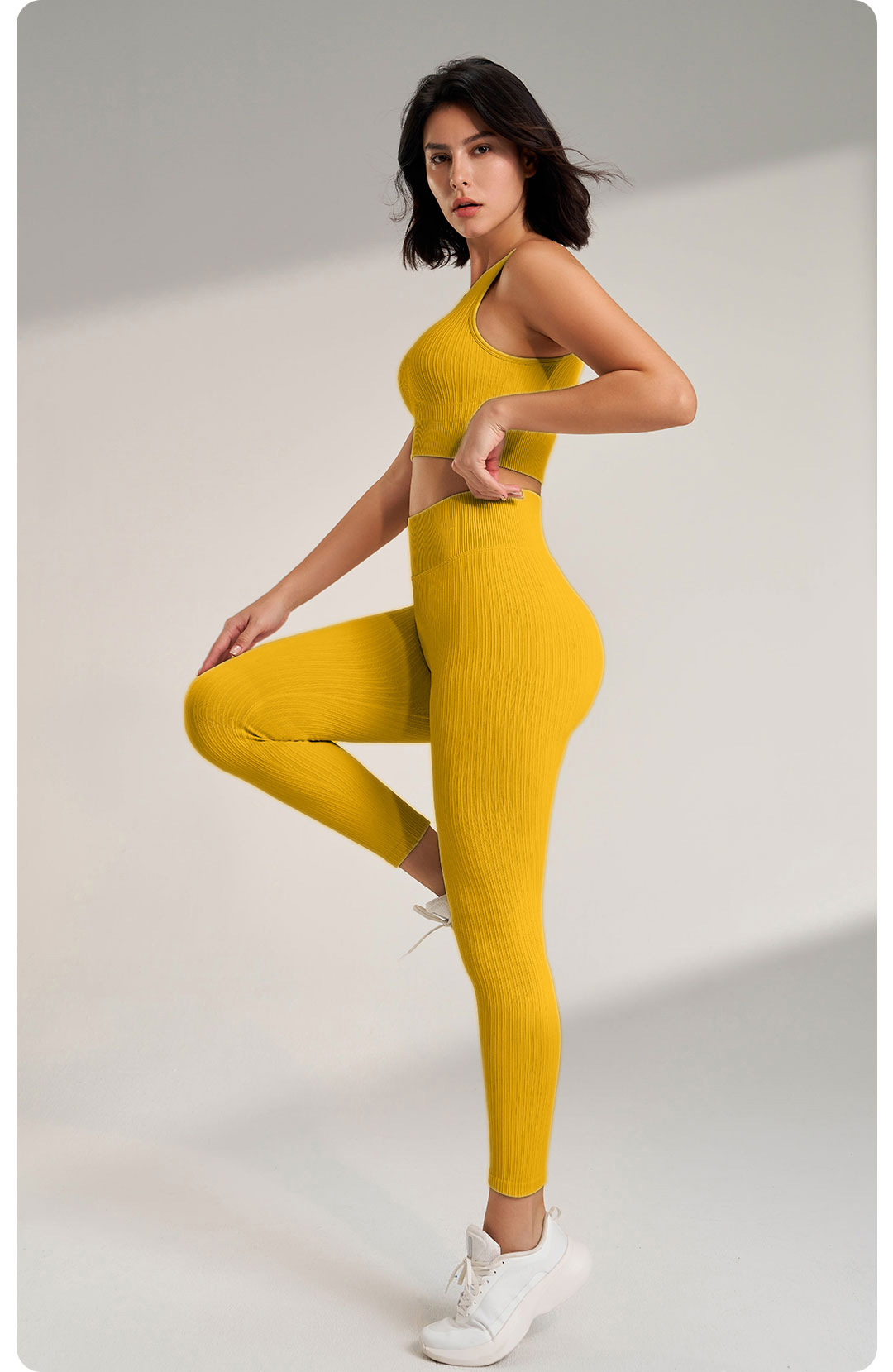 Set Dệt Kim Sọc Đứng Siêu Tôn Dáng Mút Lót Rời Cực Đẹp Chất liệu: 94% Nylon + 6% Spandex Màu sắc: Xanh Crom, Vàng đồng, Tím Môn, Đen huyền Kiểu Áo: Bra 2 lớp có mút lót rời định hình nâng ngực Quần:Cạp cao, Siếc eo che bụng, nâng mông duyên dáng Loại Hình thể Thao: Yoga, GYM, Chạy Bộ, Palites, Dance, Du Lịch Dã Ngoại…. Size: M, L