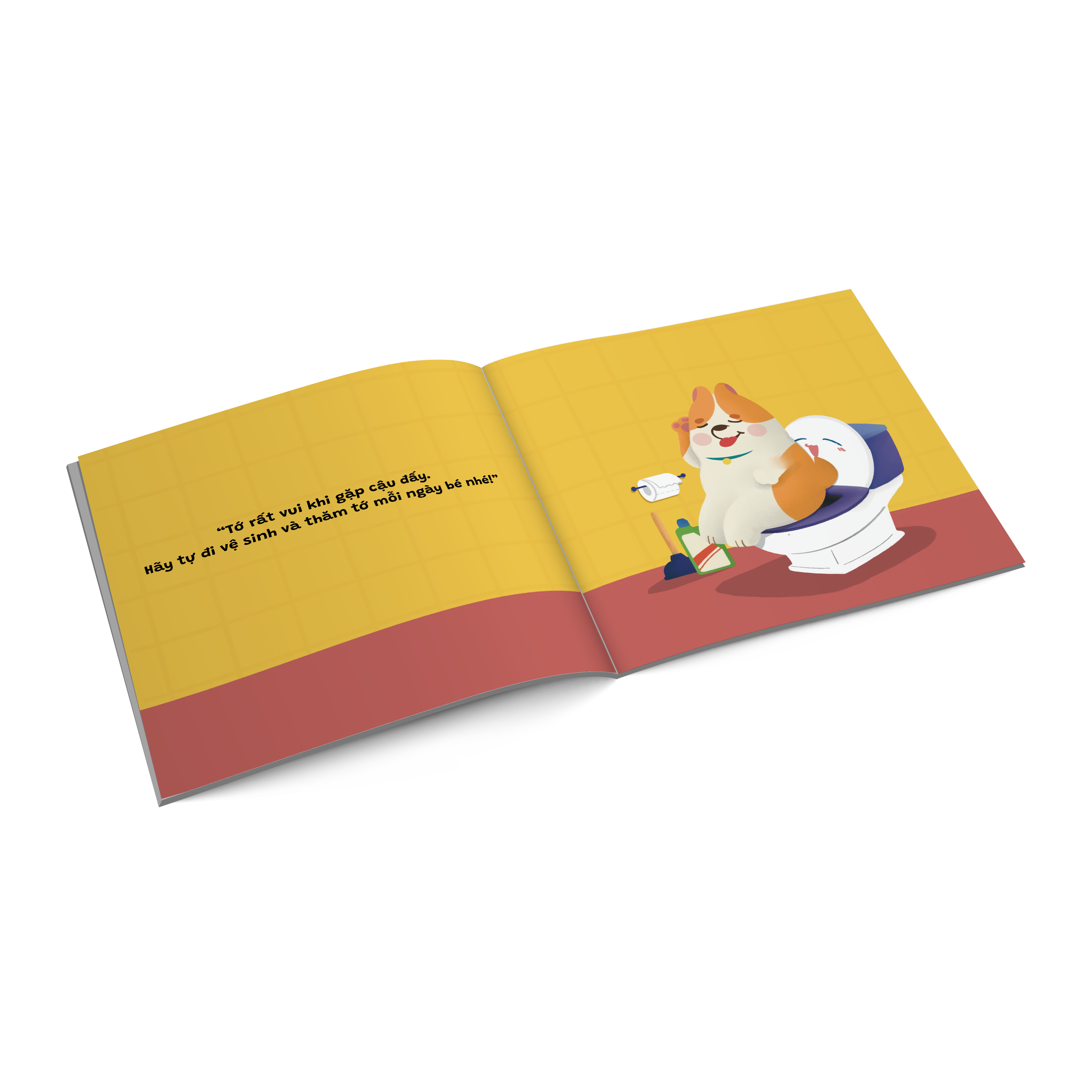 Cuốn sách vui nhộn và dí dỏm khi mà bạn Cún con mặc dù buồn đi vệ sinh lắm rồi nhưng vẫn phải tìm cho được bạn “Bồn Cầu”. Bé hãy cùng theo chân bạn Cún con để tìm ra bạn Bồn Cầu, đi vệ sinh đúng nơi quy định nhé!