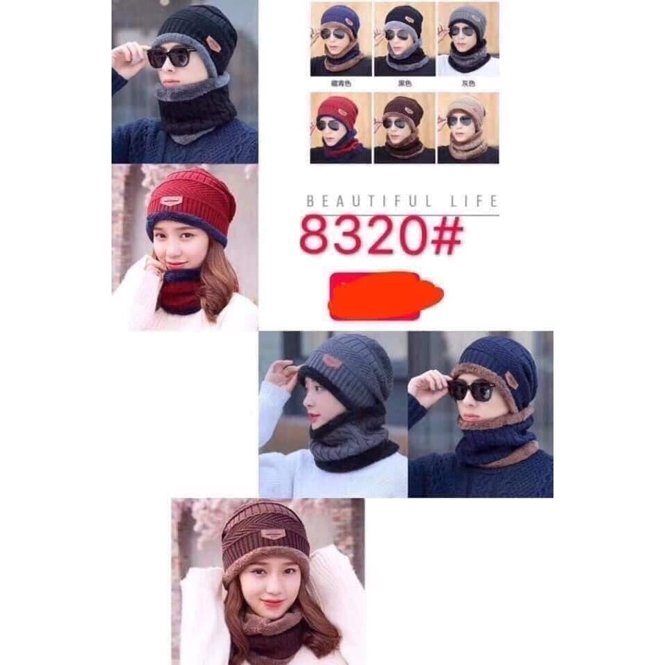 Mũ len kèm khăn ống quàng cổ lót lông dày dặn giữ ấm cho mùa đông