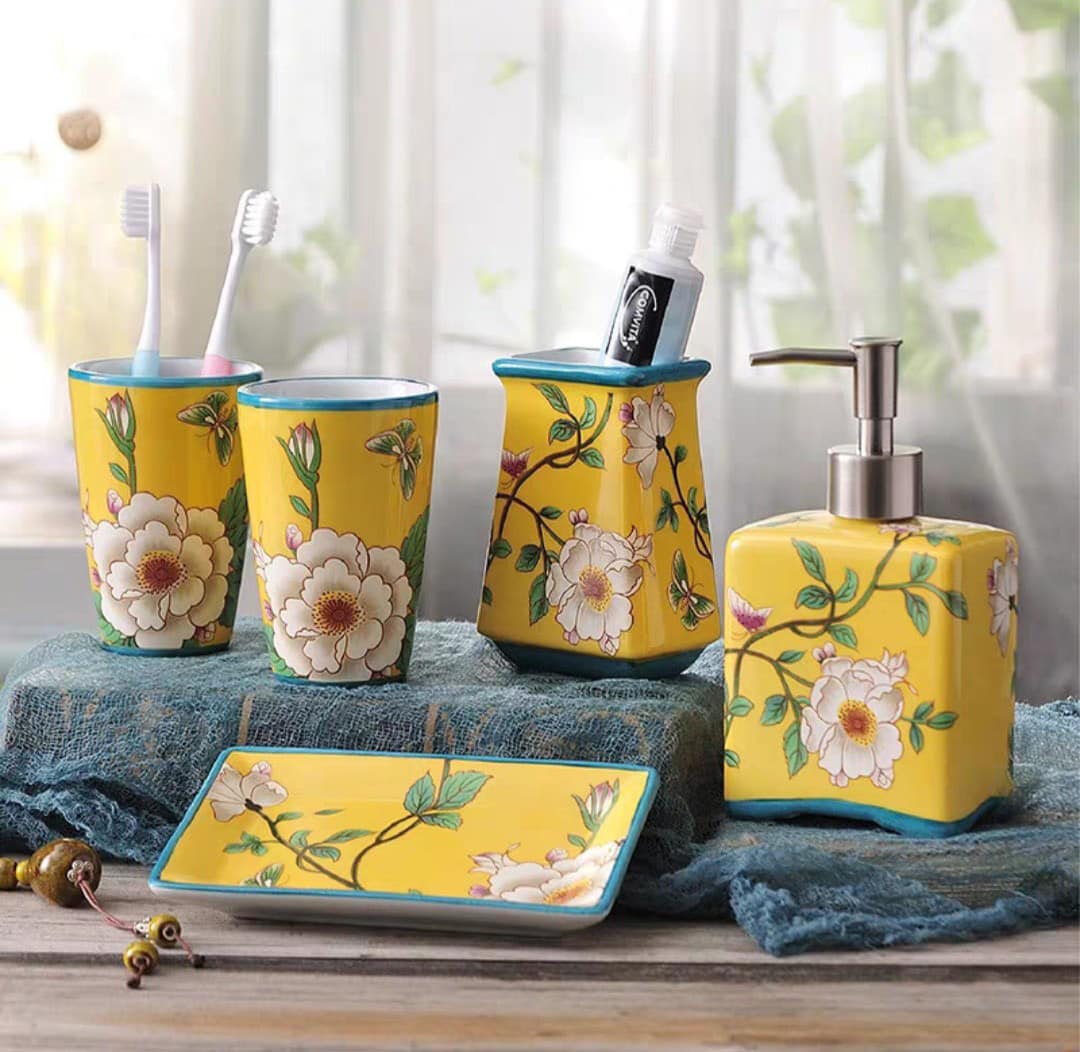 Mua tại TiktokSet nhà tắm sứ cao cấp Olive UK họa tiết hoa 5 món