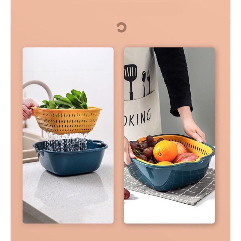 Rổ Rửa Rau Củ Quả Hai Lớp Ráo Nước Trong Suốt Dùng Trong Nhà Bếp - Rổ Đa Năng 2 Trong 1 - Hàng Chính Hãng MINIIN Chậu rửa Rổ thoát nước hai lớp này