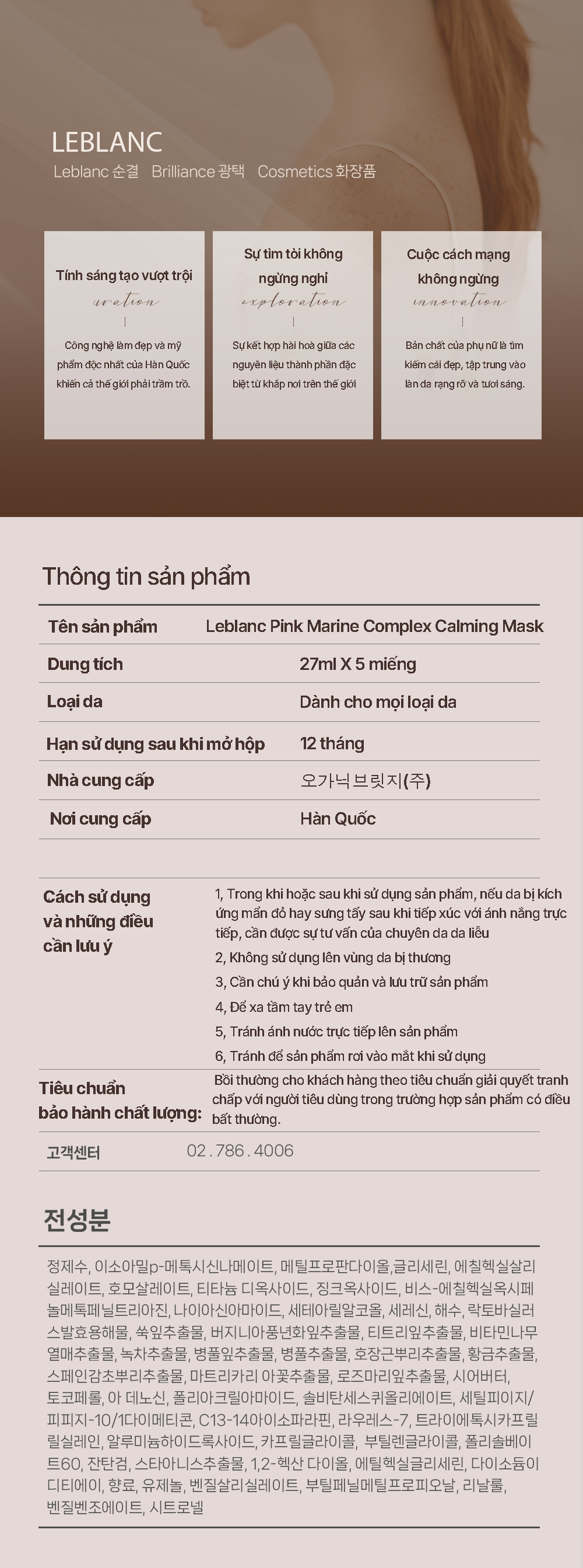 ✨Sey 10 hộp mặt nạ làm dịu và tạo độ bóng cho da Leblanc Pink Marine Complex Calming Mask Hộp 5 miếng