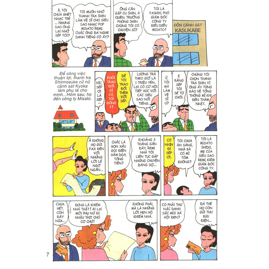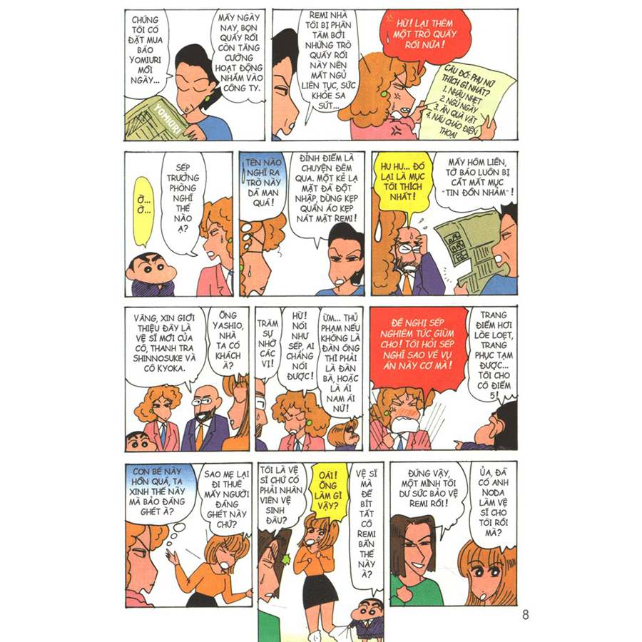 Mỗi tập truyện khoảng 120 trang, nhưng cứ thử cầm lên xem, bạn sẽ không thể rời mắt khỏi cuốn sách cho đến tận trang cuối cùng. Với tài năng kể chuyện hấp dẫn, tác giả đã biến các trang sách của mình thành những sân chơi ngập tràn tiếng cười của những cô bé, cậu bé hồn nhiên và một thế giới tuổi thơ đa sắc màu. Những bài học giáo dục nhẹ nhàng, thấm thía cũng được lồng ghép một cách khéo léo trong từng tình huống truyện. Có thể Shin là một cậu bé cá tính, hiếu động. Có thể những trò tinh nghịch của Shin đôi khi quá trớn, chẳng chừa một ai. Nhưng sau những sự cố do Shin gây ra, người lớn thấy mình cần quan tâm đến trẻ con nhiều hơn nữa, các bạn đọc nhỏ tuổi chắc hẳn cũng được dịp nhìn nhận lại bản thân, để phân biệt điều tốt điều xấu trong cuộc sống.