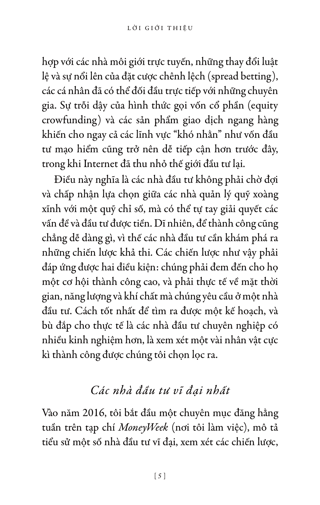 Dựa trên chuyên mục 'Những nhà đầu tư vĩ đại trong lịch sử' nổi tiếng của MoneyWeek, sách sẽ đưa ra một cái nhìn sâu sắc về 20 nhà đầu tư giỏi nhất trong 200 năm qua và chỉ cho độc giả cách học hỏi họ.