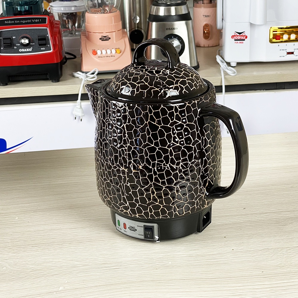 Dung tích: 2.8 L- Công suất: 450W- Thân ấm thiết kế với hoa văn ông già - củ sâm- Nguồn gốc sứ từ làng gốm Bát Tràng nổi tiếng- Chất liệu gốm được nung ở