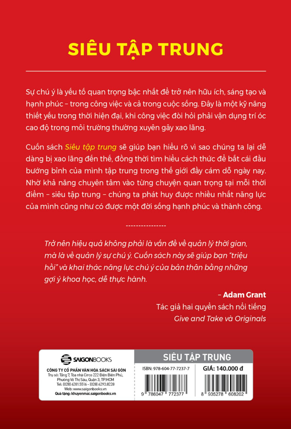 Cuốn sách mang đến những chỉ dẫn tuyệt vời về cách làm chủ sự chú ý của bản thân. Qua cuốn sách nay, Chris Bailey sẽ giup bạn hiểu về sự tập trung và làm thế nào để làm việc, sáng tạo một cách hiệu quả. Đừng lo lắng rằng cuốn sách này chỉ toàn lý thuyết, có rất nhiều những hướng dẫn, công cụ tuyệt vời ở đây khiến bạn chỉ muốn thử thực hành ngay lập tức.