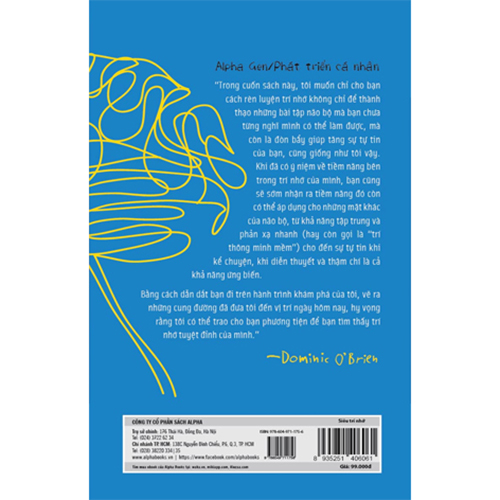Cuốn sách cung cấp những kỹ thuật ghi nhớ có thể cải thiện hoàn toàn trí nhớ của bạn, đồng thời đưa ra những lời khuyên về sức khỏe tinh thần và thể chất để rèn luyện một trí nhớ hoàn hảo. Dominic O'Brien - 8 lần vô địch thế giới về trí nhớ - còn thiết lập 15 bài tập đơn giản đánh giá mức độ tiến bộ không ngừng của bạn xuyên suốt quá trình đọc cuốn sách.
