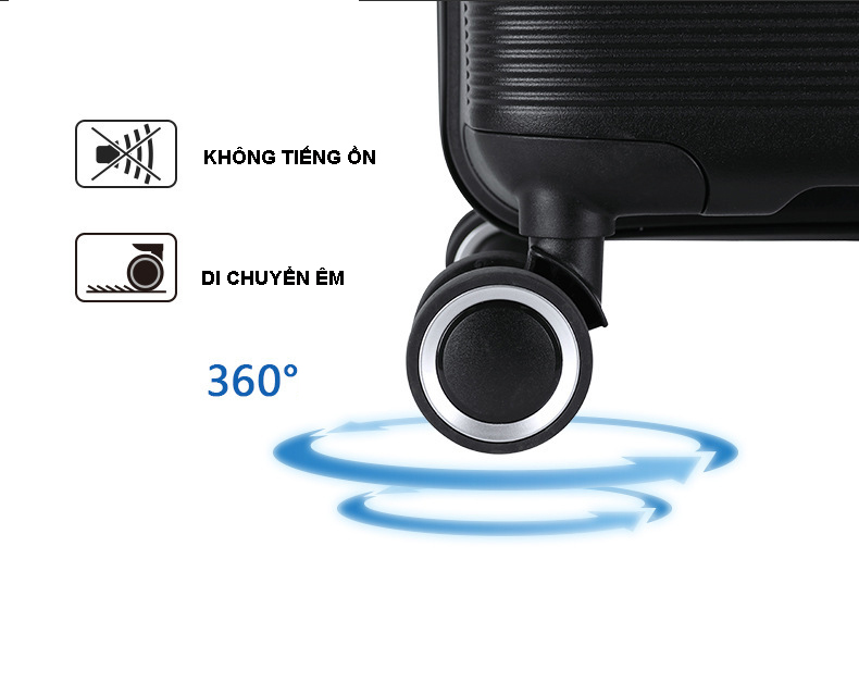 Vali NiceVilla được trang bị hệ thống bánh xe đôi với khả năng chịu lực cực tốt trên 4 trục xoay, toàn bộ trọng lực bên trên sẽ được phân tán đều qua các tiếp điểm với mặt đường. Bên cạnh đó vỏ bánh xe làm bằng cao su thiên nhiên đúc nguyên khối, bọc quanh khung nhựa cứng có lỗi cốt thép đặc bên trong, hạn chế ma sát với mặt đường, hỗ trợ điều hướng vali, giúp di chuyển sản phẩm êm ái, không gây tiếng ồn.