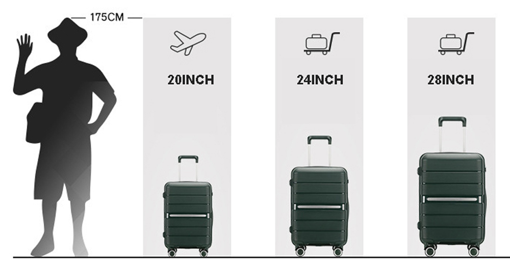 1. Lưu Ý Khi Chọn Size : + Size 20inch kích thước: ( 50cmx34cmx22cm) nặng 3.2kg, đựng được 7-10kg hành lý - Xách tay được lên máy bay ( theo tiêu chuẩn được phép xách