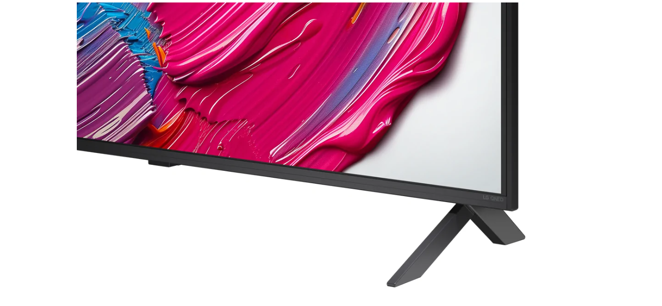 Thiết kế - Khi đặt tivi LG trên bất kì bề mặt nào, bạn cũng không lo rung lắc nhờ có hai chân đế nhựa lõi kim loại hình chữ V ngược nâng đỡ bên dưới. - Thiết kế