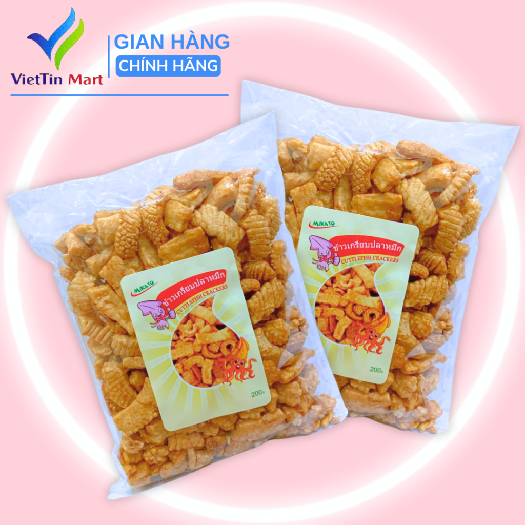 GIỚI THIỆU VỀ VIETTINMART Quý khách hàng thân mến, VIETTINMART ra đời với mong muốn mang lại nguồn thực phẩm chất lượng tốt nhất cho người tiêu dùng. Chúng tôi tìm kiếm nguồn nguyên liệu tốt nhất, xuất xứ từ đúng những vùng trồng đặc hữu, được canh tác và thu hoạch đúng cách, đúng mùa vụ. VIETTINMART luôn nổ lực không ngừng với mong muốn mang giá trị về sức khỏe tới cộng động bằng sự đảm bảo chất lượng và đa dạng sản phẩm mỗi ngày và mỗi một cảm nhận của khách hàng về sản phẩm của VIETTINMART đều được chúng tôi ghi nhận, tiếp thu và phát triển hơn mỗi ngày, bởi vì SỨC KHỎE CỦA KHÁCH HÀNG LÀ QUAN TÂM HÀNG ĐẦU CỦA VIETTINMART !   THÔNG TIN SẢN PHẨM Tên sản phẩm: Snack Mực Thái Lan Viettin Mart Gói 200G Thành Phần: bột mì, gia vị, hương liệu.. Thương hiệu: Mikato Khối lượng: 200g Quy cách đóng gói : Sản phẩm được đóng gói Ngày Sản Xuất: in trên bao bì Hạn sử dụng: 6 tháng. Hướng dẫn bảo quản: Nơi khô ráo, thoáng mát hoặc bảo quản tủ lạnh. Tránh ánh nắng mặt trời trực tiếp Hướng dẫn sử dụng: Dùng trực tiếp ko cần chế biến Đây là loại snack nổi tiếng nhất trong các loại snack mực giòn đang được ưa chuộng tại Bangkok Từng miếng snack giòn xốp thấm đẫm vị mực ngọn mặn cay đủ vị hoà quyện cực đã, một trong số ít ỏi những loại bánh có vị ngon cuồng say. Nếu bạn nào ghiền vị mực nướng cháy thì đừng bỏ qua loại snack này nhé, trẻ con người lớn đều thích Xuất xứ : Thái Lan   ĐỔI TRẢ: Đổi trả miễn phí trong vòng 15 ngày khi phát hiện lỗi từ nhà sản xuất.
