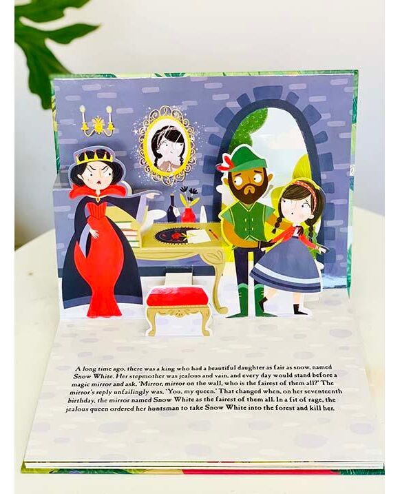 Snow White And the Seven Dwarves: Fairy Tale Pop-Up Book Bring the wonderful story of Snow White and the Seven Dwarves to life with this magical pop-up book. When the evil queen orders Snow White to be killed, she is taken deep into the forest. There, she discovers a lovely little cottage owned by seven dwarves who kindly take her in, but will the queen find out?