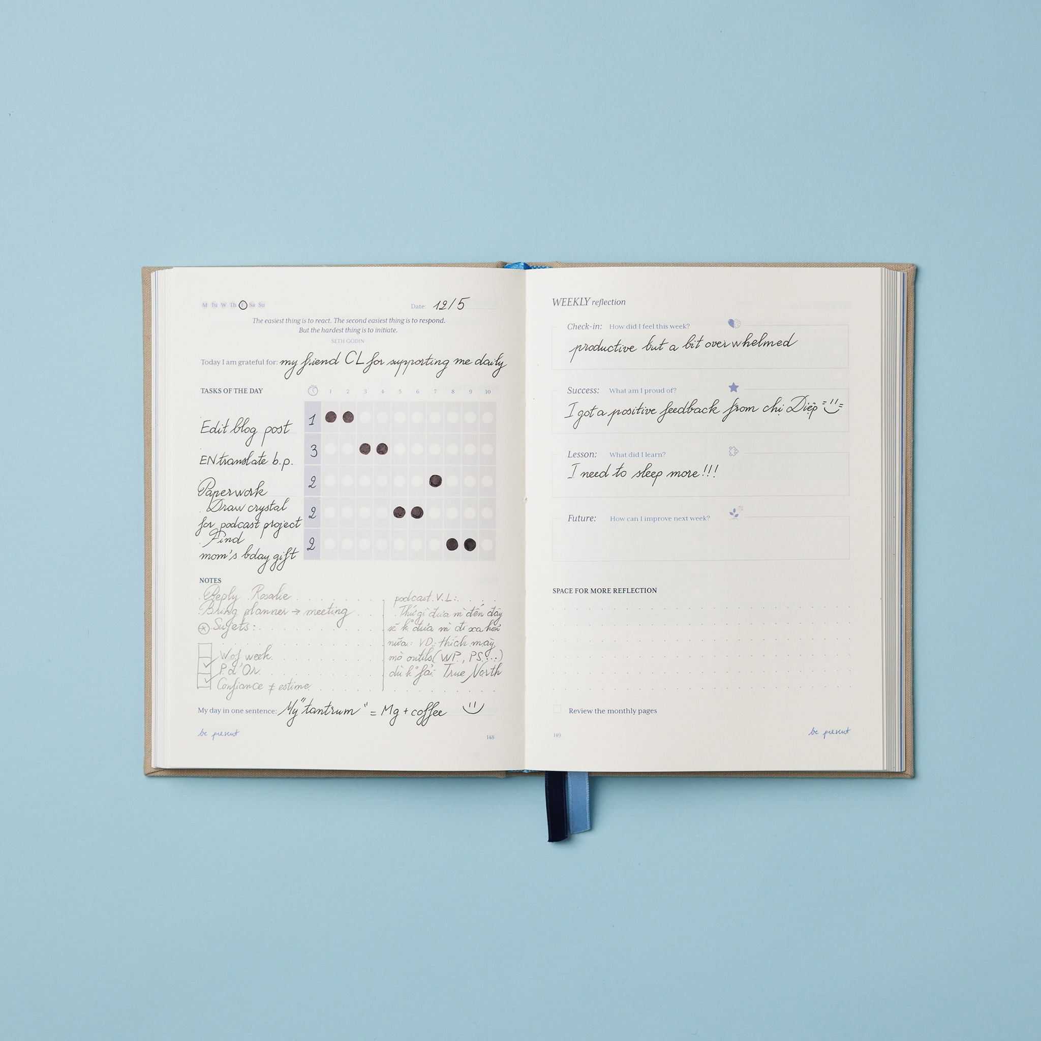 Sổ kết hợp những phương pháp khoa học đã được kiểm chứng về quản lý thời gian, làm việc hiệu quả với các ứng dụng tâm lý học tích cực, nâng đỡ sức khỏe tinh thần.
