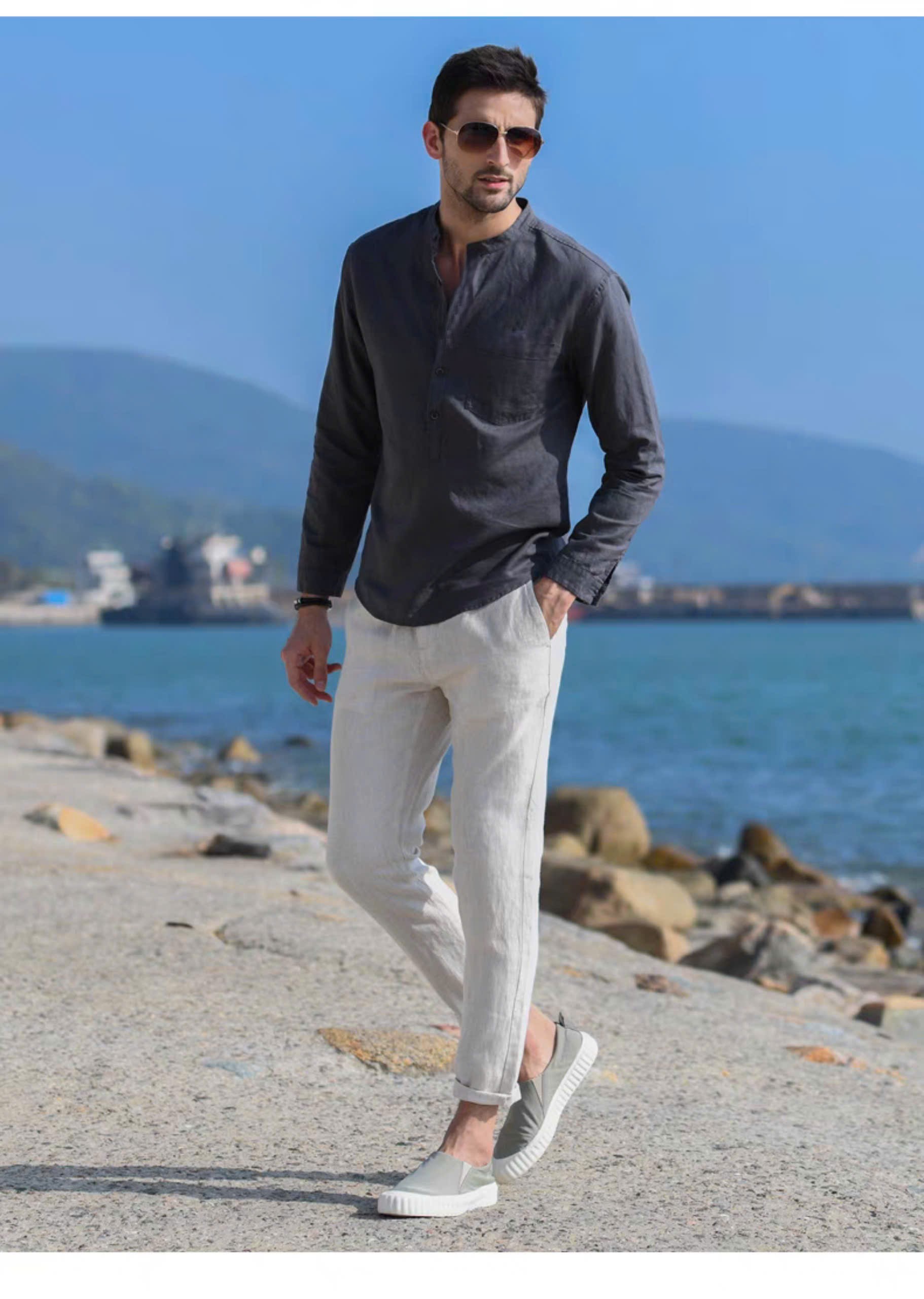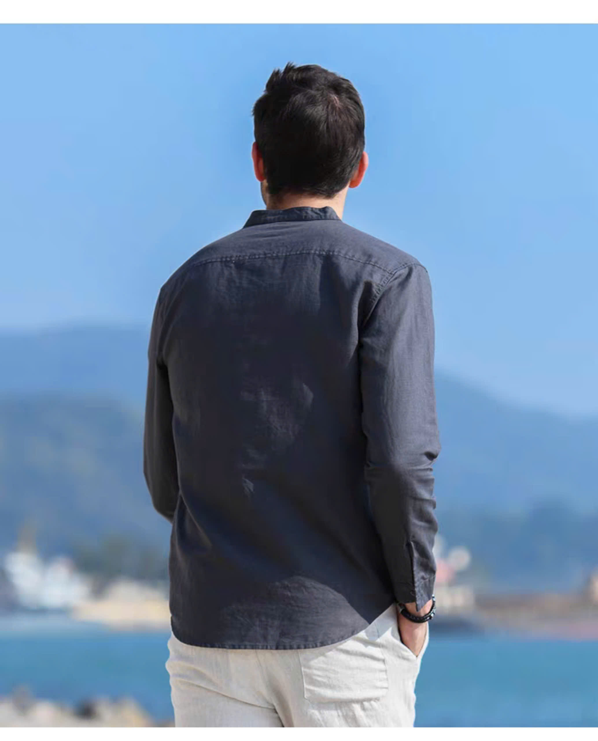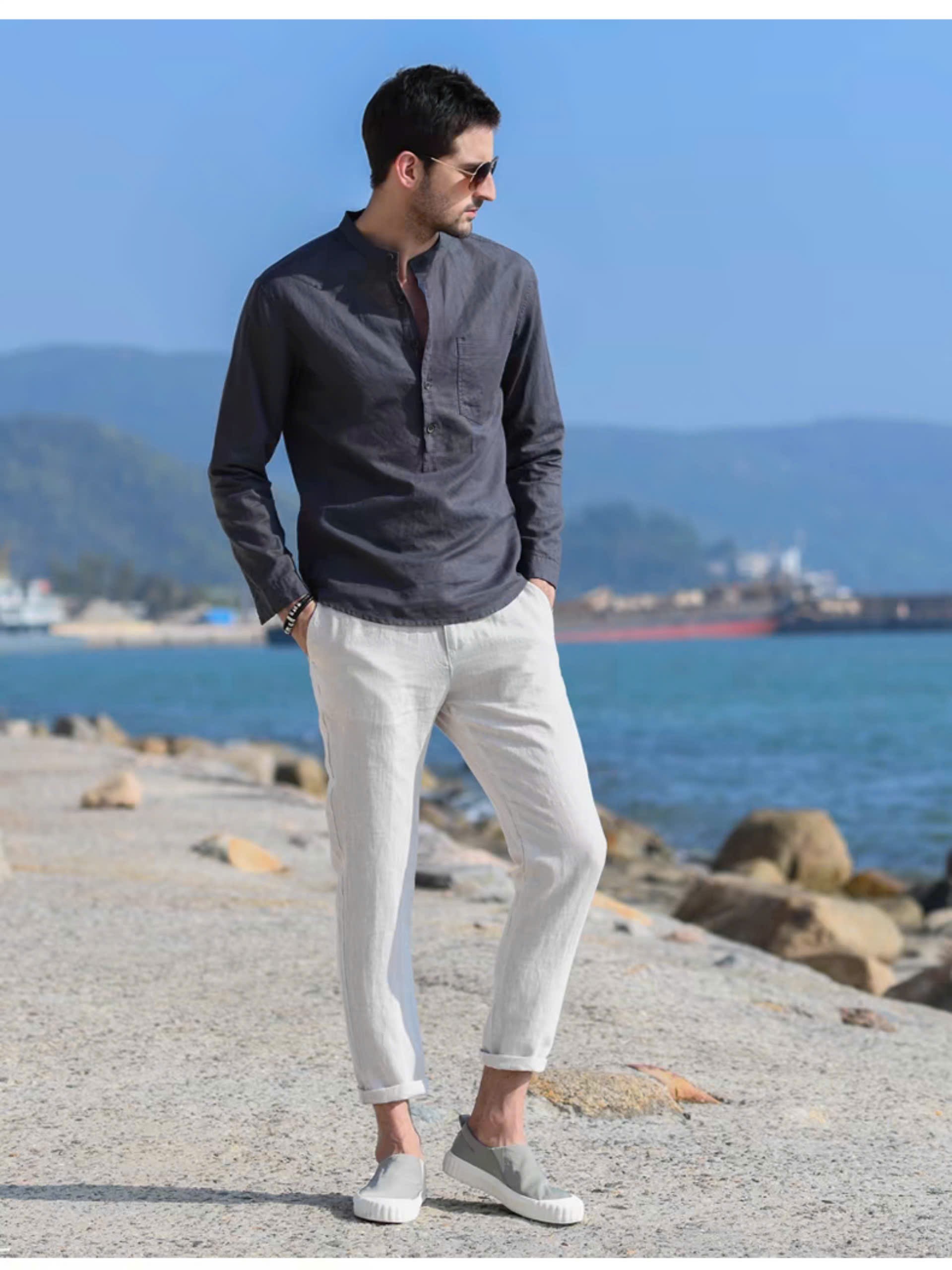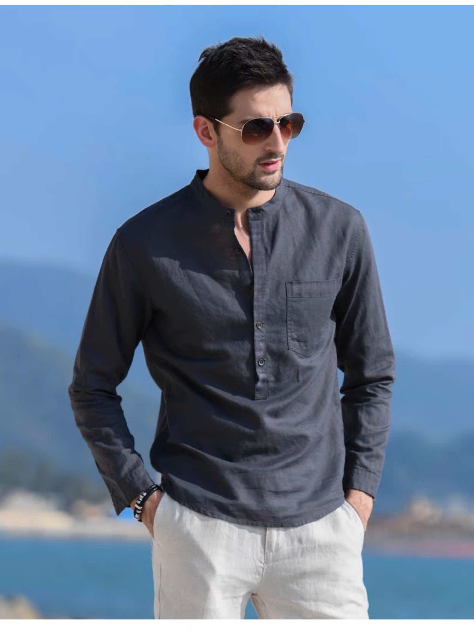 ✨Sơ mi nam trẻ trung thanh lịch, sơ mi cổ trụ thời trang trẻ 2024 basic
