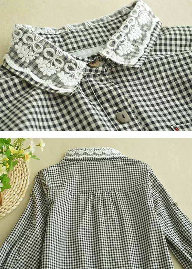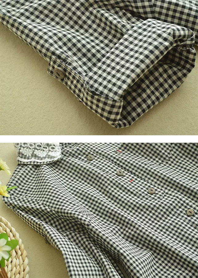 Mấu áo sơ mi tay dài kẻ sọc caro cho nữ