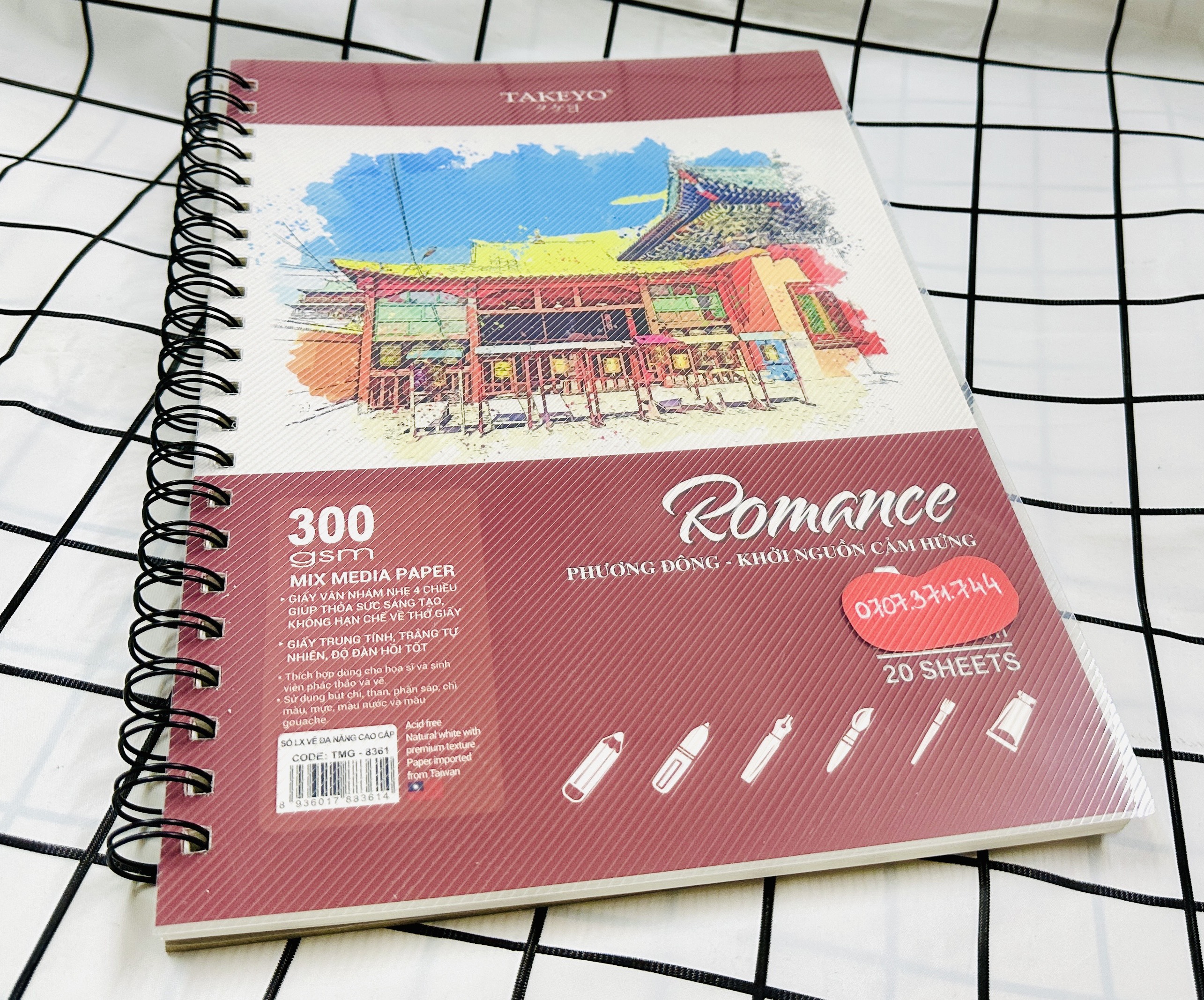 ✨Sổ Vẽ Lò Xo Đa Năng Cao Cấp 20 Tờ Size A4-A5 Định Lượng Giấy 200GMS Và 300GMS Bìa Nhựa Chống Thấm Nước ROMACE TAKEYO, Sổ Vẽ Chuyên Dùng Cho Màu Nước