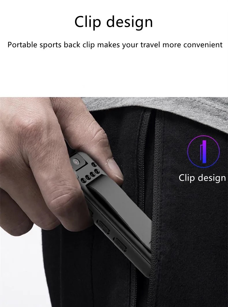 Tính năng sản phẩm: 1. Một phím để bắt đầu ghi và quay phim 2. Đèn phụ tắt trong khi ghi 3. Ghi và sạc đồng thời 4. Ghi vòng lặp 5. Chất lượng HD