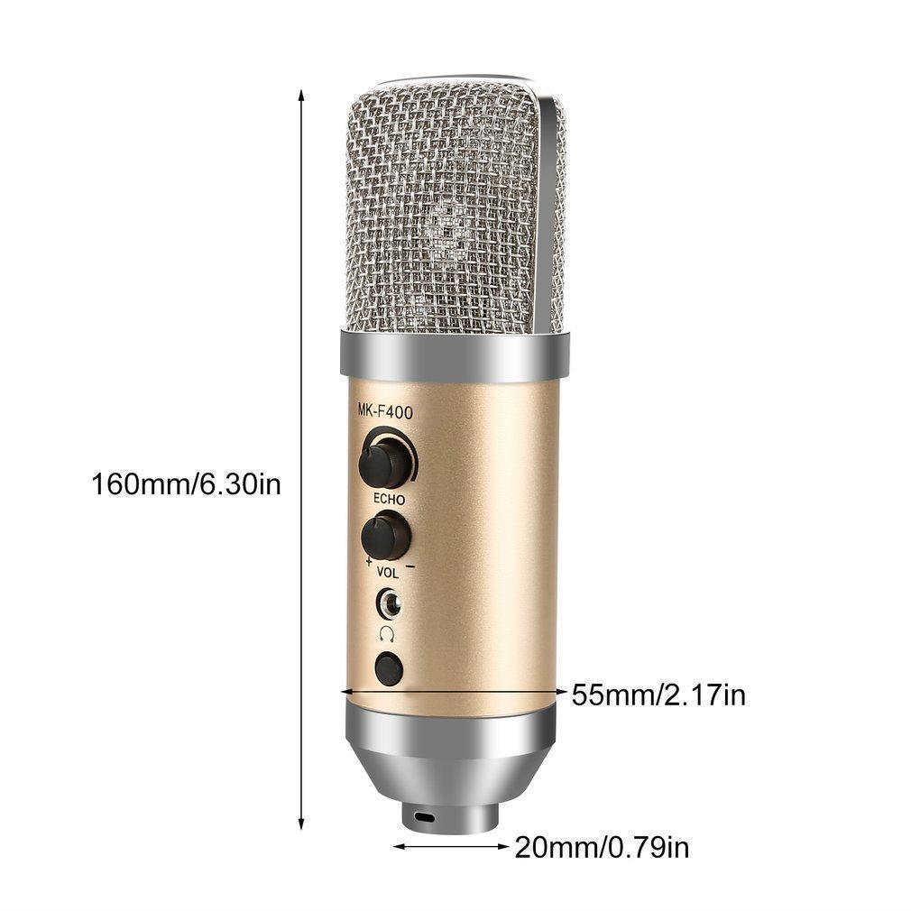 - Vẫn nhưng thông số như âm lượng, độ vang được tùy chỉnh ngay trên thân mic, bạn hoàn toàn có thể hát hay mà không cần thêm bất cứ 1 chiếc Soundcard rời nào cả MK-F400USB micro có thể điều chỉnh giảm âm lượng Echo bù âm thanh KTV Thích hợp cho các đài phát thanh, phòng thu âm, ghi âm tại nhà, chơi game và trò chuyện video Đáp ứng tần số tùy chỉnh 30Hz-20kHz cho âm thanh rõ ràng và độ trung thực cao Nam châm Neodymium, không có bến dạng giọng nói, không lặp lại. Các tính năng: (Cắm và chạy) Kết nối trực tiếp với cổng USB 2.0 để ghi nhạc, phát trực tiếp và hơn thế nữa. Nó rất dễ sử dụng trên tất cả các hệ thống máy tính mà không cần bất kỳ phần mềm bổ sung nào. Thông số kỹ thuật: Tụ điện Mức tối đa: 120 db S.P.L Tỷ lệ tín hiệu / nhiễu: 70 decibel Độ nhạy: 25 mv / Pa (-32 db ± 2 db) Chức năng nhập từ: +1 dB + 25 dB (có thể điều chỉnh mức tăng) Cắm cáp USB Nguồn: USB DC5V Bộ sản phẩm bao gồm: 01 Microphone MK-F400USB 01 Chân đê 01 Kẹp micro 01 Cáp nguồn USB 01 Bông lọc 01 Sách hướng dẫn