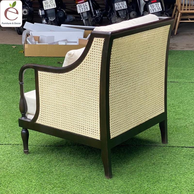 Khung làm bằng gỗ chắc chắn bao gồm thiết kế khung gỗ tần bì với các tay nghiêng. Chân ghế được hoàn thiện theo phong cách thời Victoria mang đến cho chiếc ghế câu lạc bộ này một vẻ ngoài hoàn toàn chân thực. Mây được sử dụng mây tự nhiên mang lại cảm giác thân thiện với mội trường.
