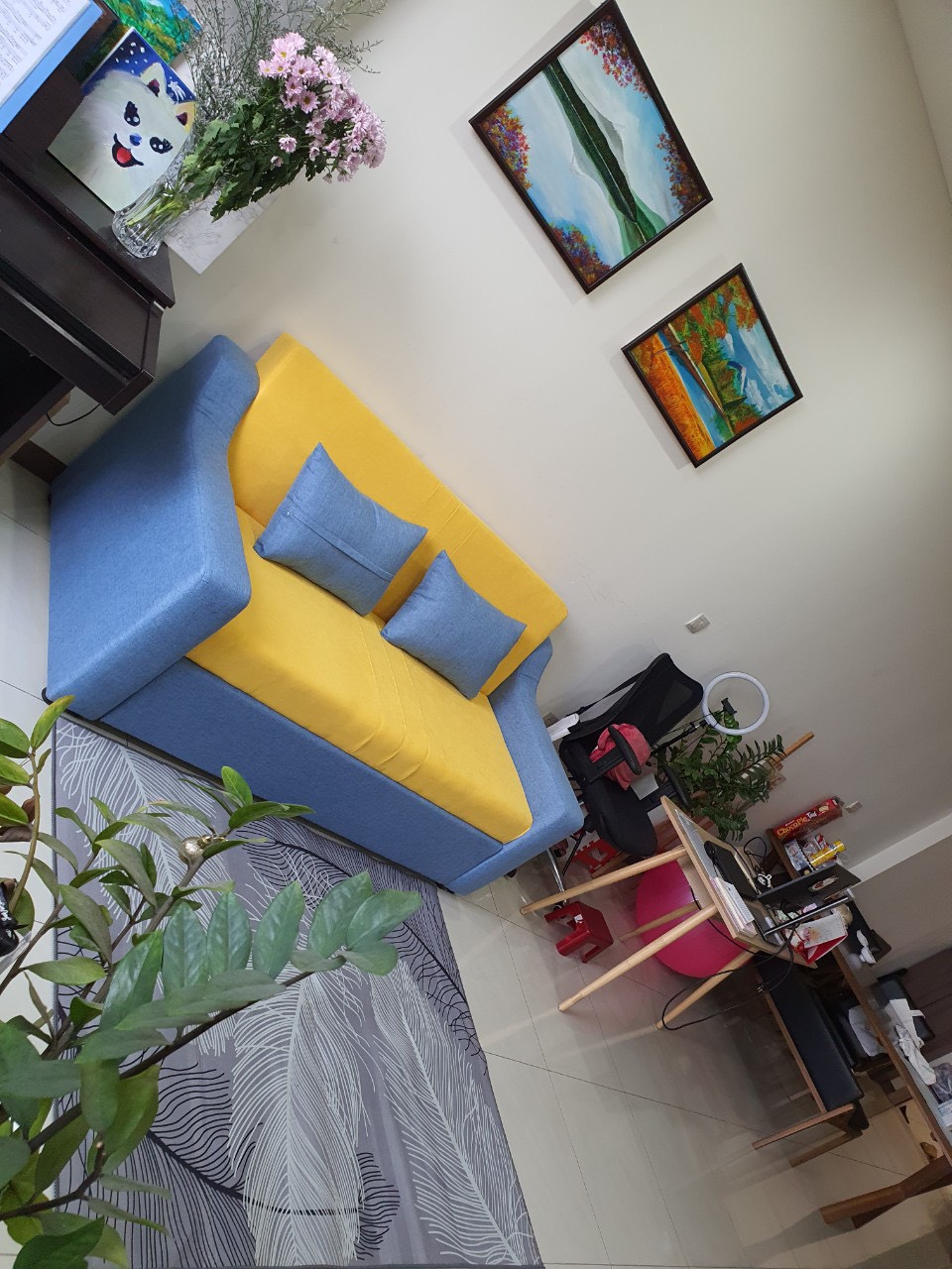 Sofa bed, sofa giường 1m7x90, có thể bật ra thành giường để nằm Kích thước 1m7x90 (kích thước phổ thông) Chất liệu: khung gỗ dầu, mút d30, simili Bao gồm: ghế dài 1m7x90, 2 gối