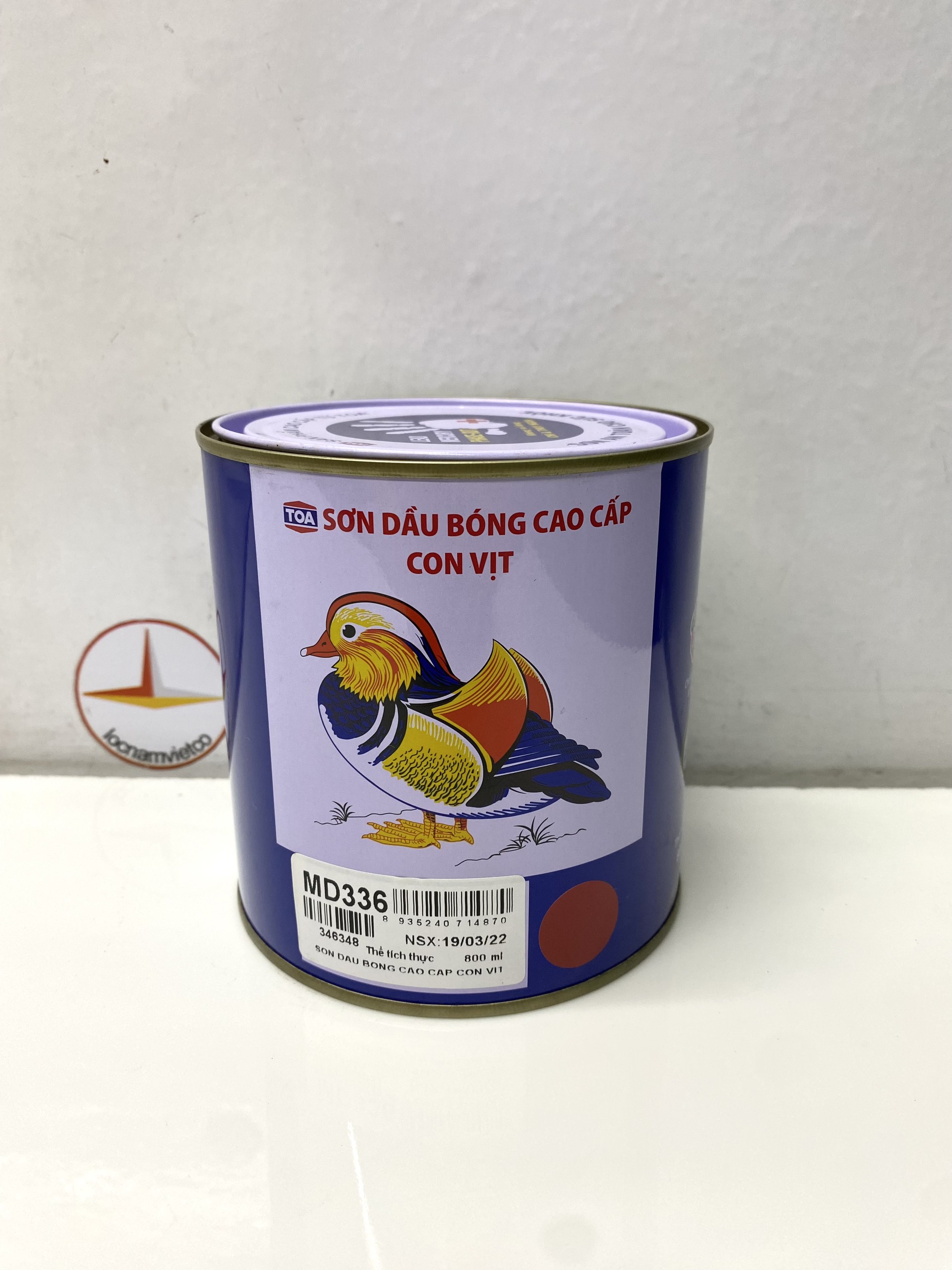 Mua tại TiktokSơn dầu cao cấp Toa hiệu Con Vịt màu đỏ MD336_800ML Sơn dầu bóng cao cấp Con Vịt (Mandarin Duck) là loại sơn Alkyd chất lượng cao, không sử dụng Chì & Chất gây hại, là loại sơn an toàn cho sức khoẻ với các tính năng: Khô nhanh, màng sơn bóng đẹp, độ phủ cao, chống nấm mốc, màu sắc tươi đẹp.