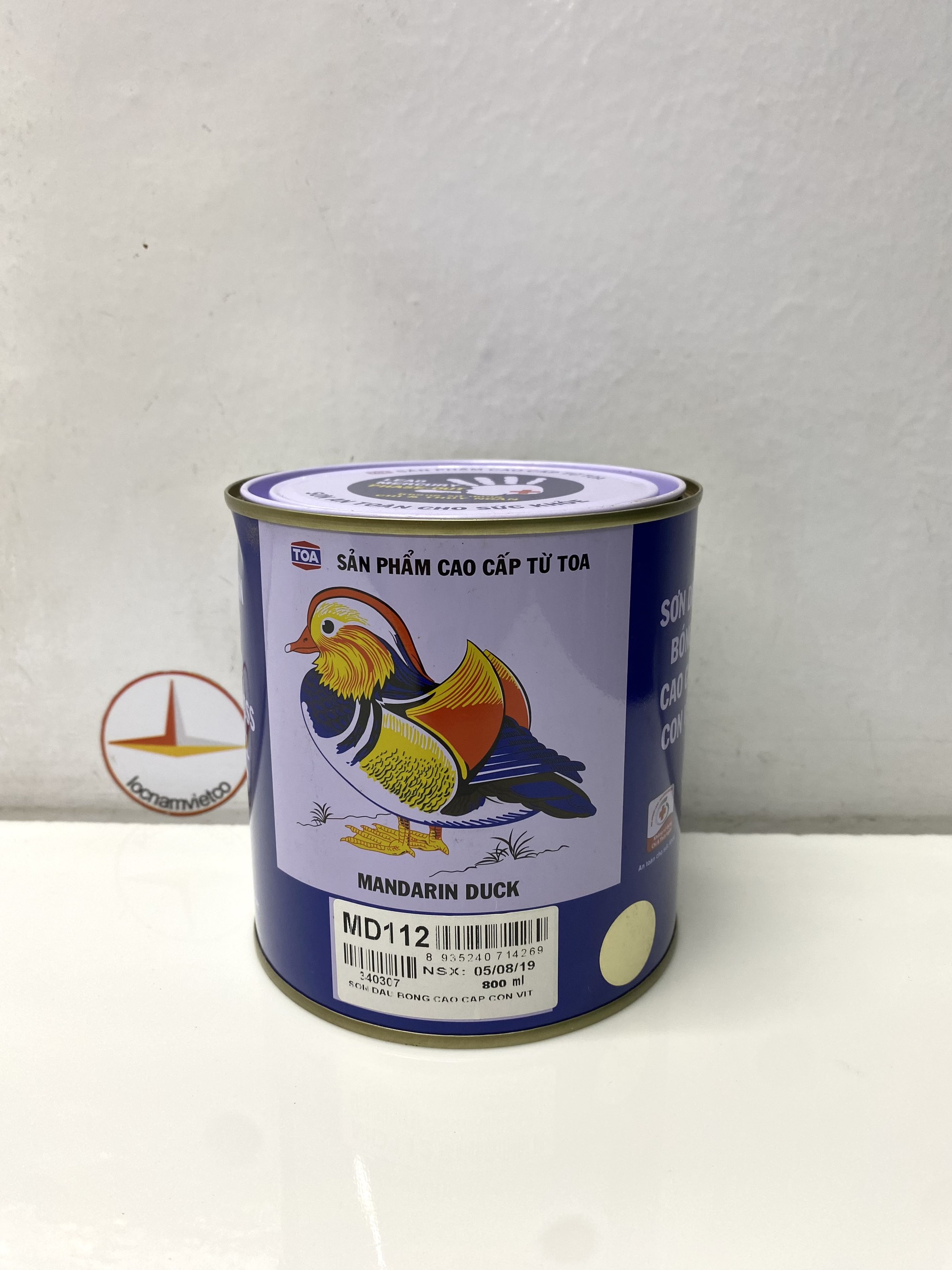 Mua tại TiktokSơn dầu cao cấp Toa hiệu Con Vịt màu kem MD112_800ML Sơn dầu bóng cao cấp Con Vịt (Mandarin Duck) là loại sơn Alkyd chất lượng cao, không sử dụng Chì & Chất gây hại, là loại sơn an toàn cho sức khoẻ với các tính năng: Khô nhanh, màng sơn bóng đẹp, độ phủ cao, chống nấm mốc, màu sắc tươi đẹp.