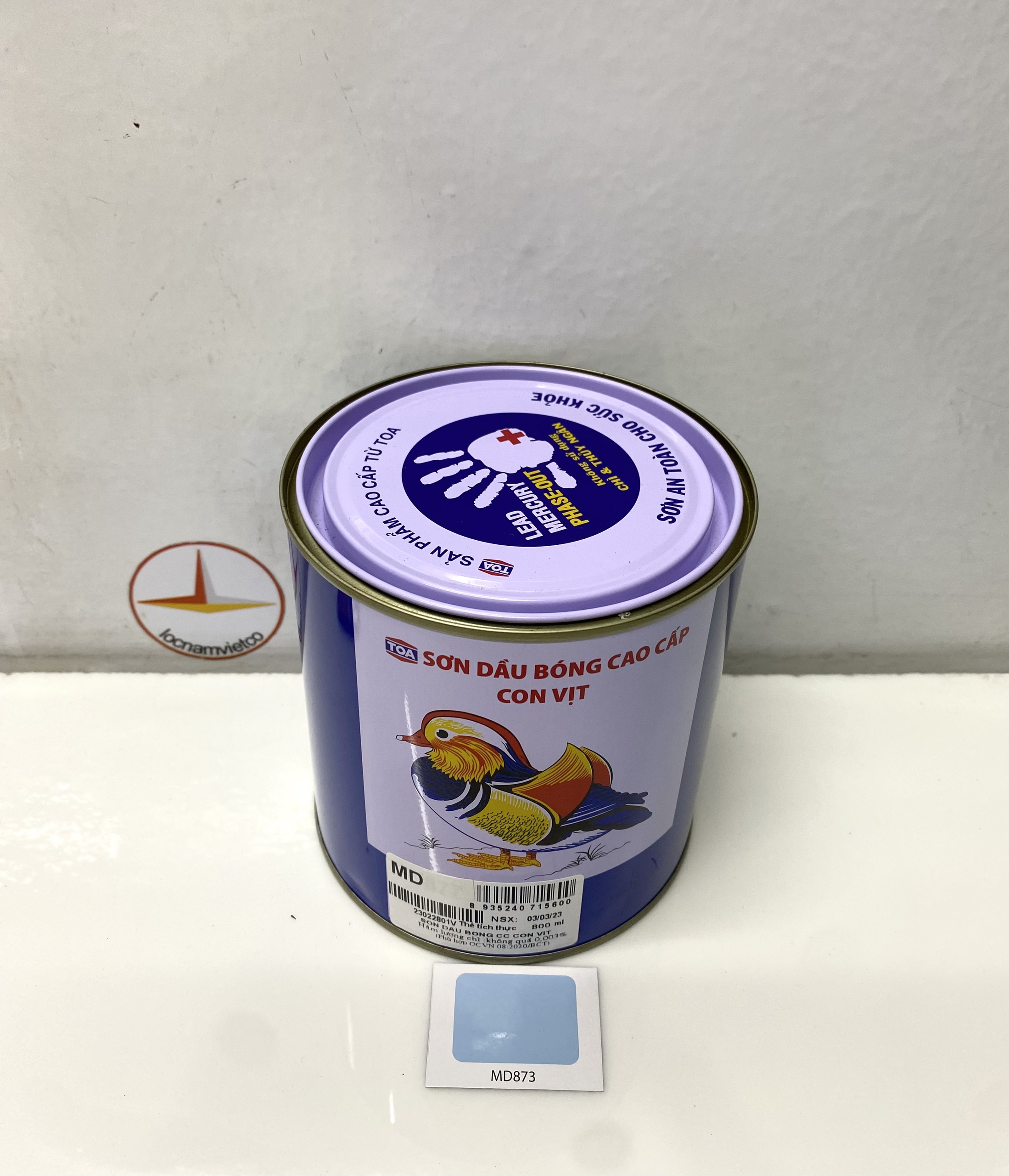 Mua tại TiktokSơn dầu cao cấp Toa hiệu Con Vịt màu xanh da trời MD873 _800ML Sơn dầu bóng cao cấp Con Vịt (Mandarin Duck) là loại sơn Alkyd chất lượng cao, không sử dụng Chì & Chất gây hại, là loại sơn an toàn cho sức khoẻ với các tính năng: Khô nhanh, màng sơn bóng đẹp, độ phủ cao, chống nấm mốc, màu sắc tươi đẹp.