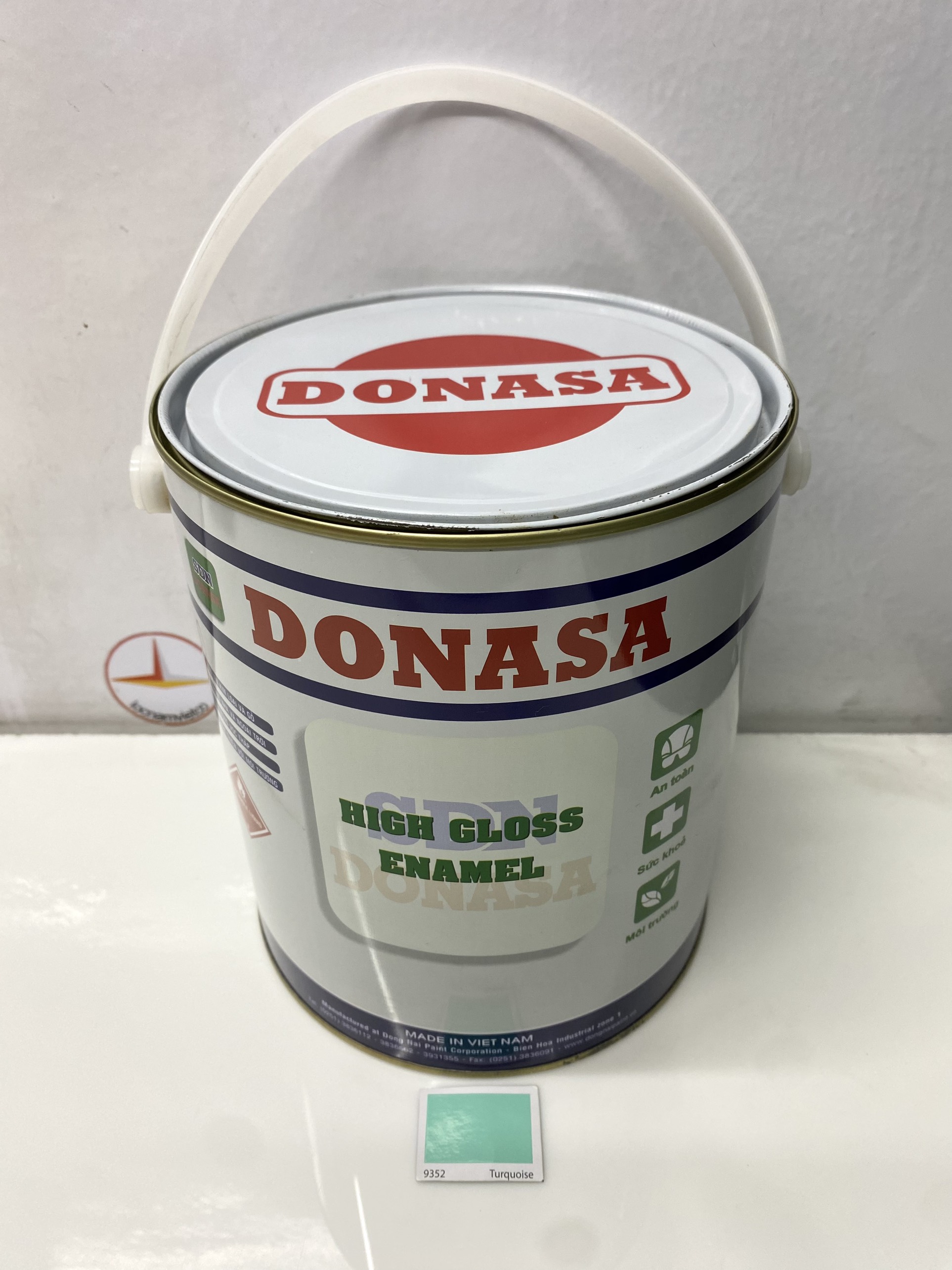 Sơn dầu Đồng Nai Donasa màu xanh ngọc 9352 3kg  - Sơn Donasa Alkyd là loại Sơn phủ ngoài, trang trí cho các bề mặt gỗ và kim loại.   - Phù hợp các công trình xây dựng dân dựng,dùng sơn nội và ngoại thất.  Đặc điểm:  Sơn Đồng Nai  Alkyd Bám dính tốt trên bề mặt gỗ và kim loại.