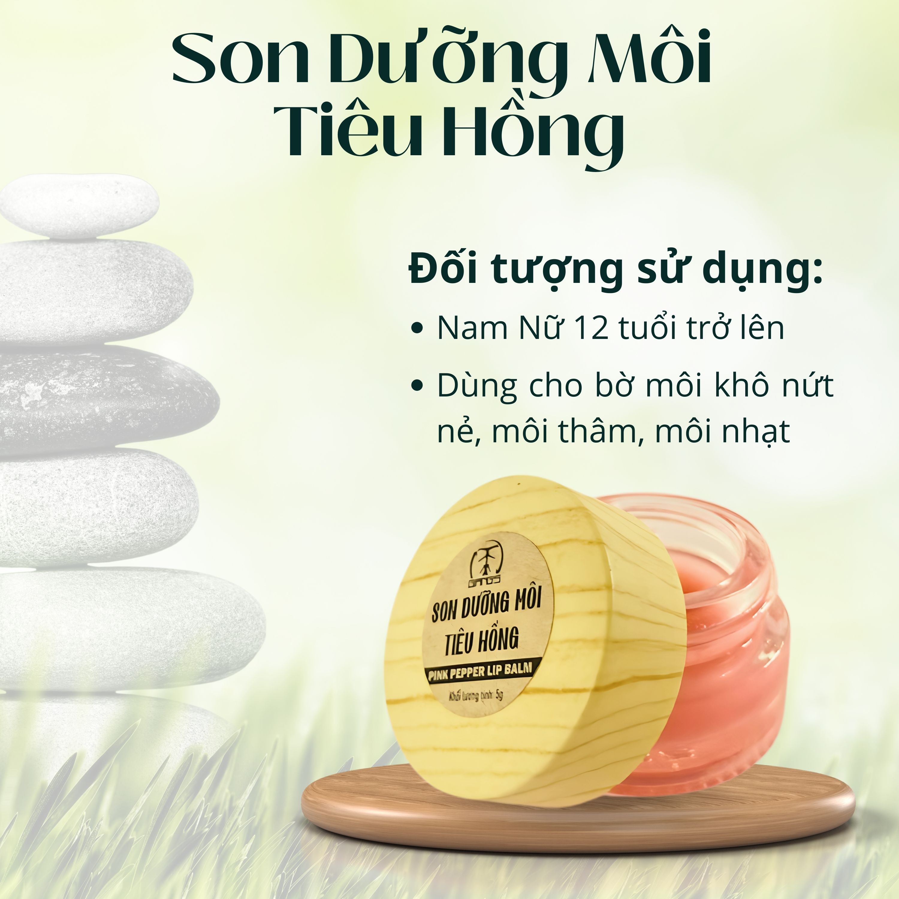 Son dưỡng môi tiêu hồng- Giúp hồng môi tự nhiên nhờ chiết xuất hạt tiêu, giữ ẩm môi- hũ nhỏ 5g tiện dụng 1, Công dụng - Chiết xuất hạt tiêu giúp tăng tuần